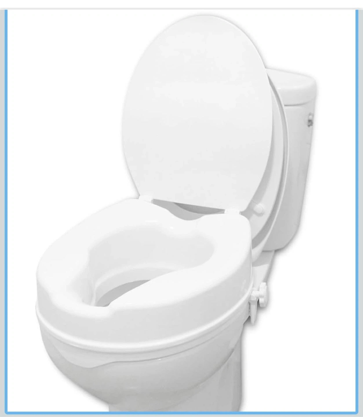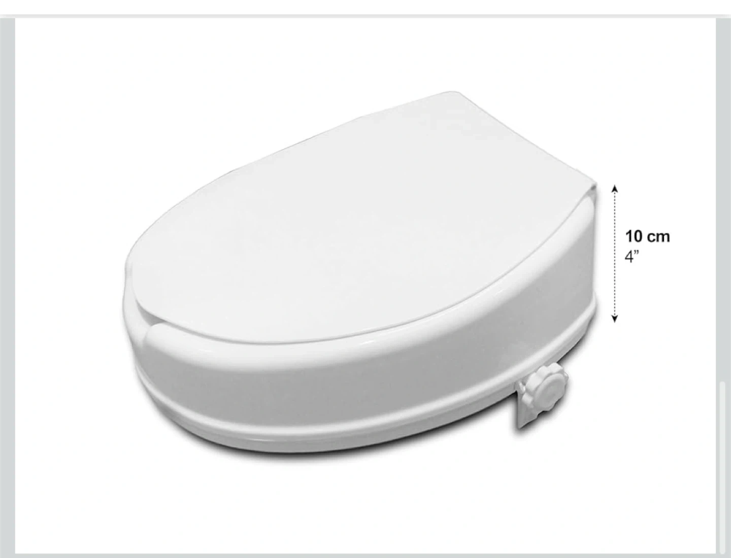 Selling a raised toilet seat with a lid. It's in great shape and ready to use. It's white and adds about 4 inches of height for added comfort and assistance. It can hold up to 300 lbs.
