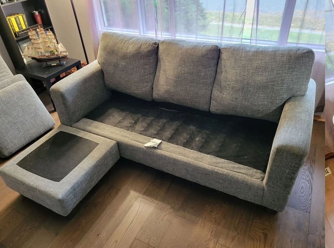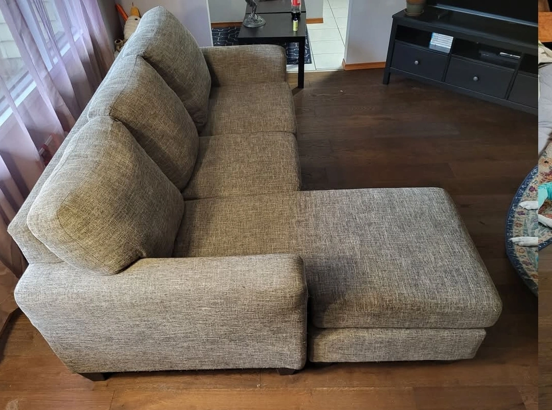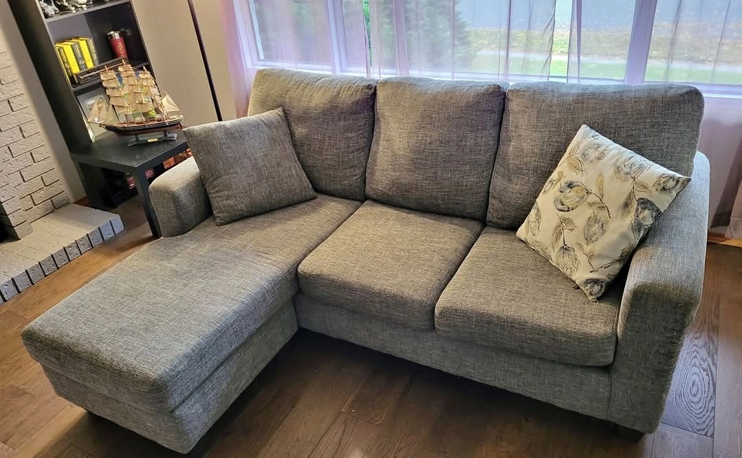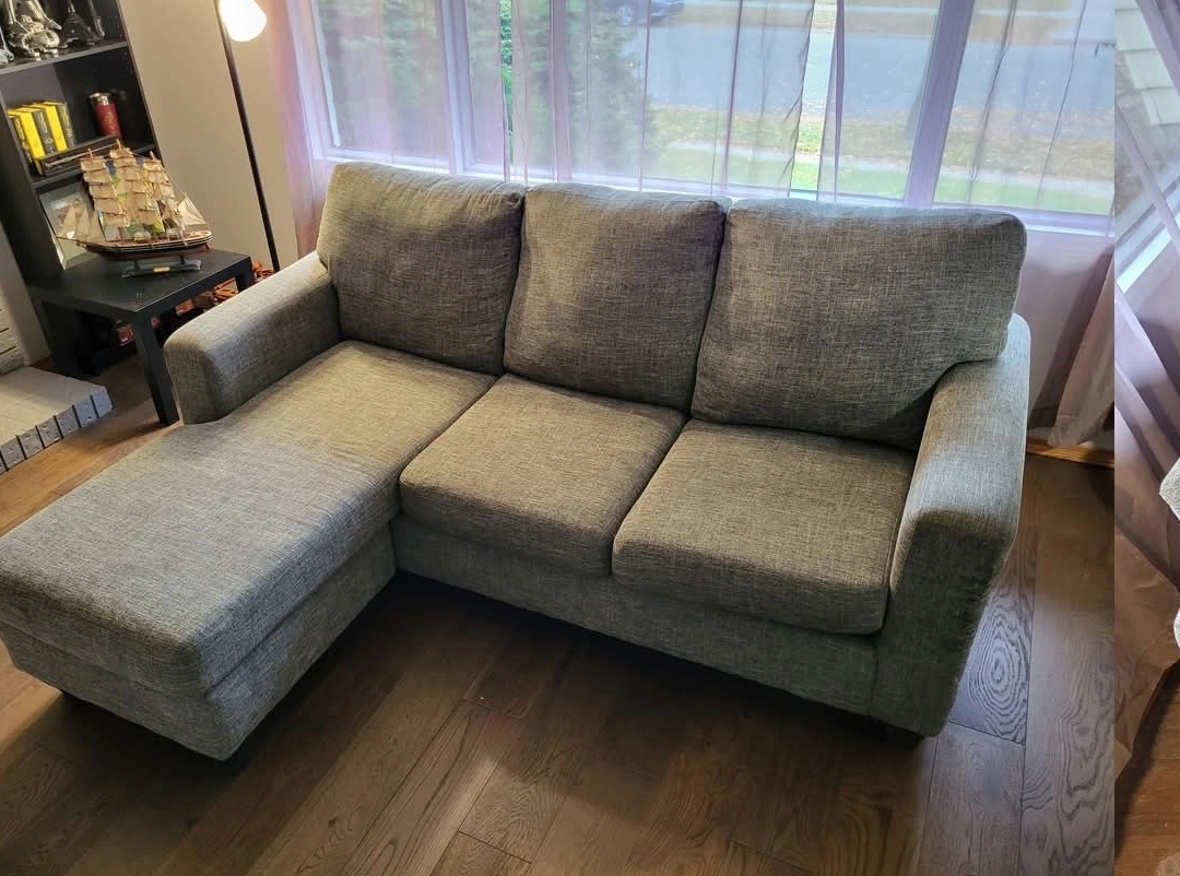 Selling a comfy grey sectional sofa. It's in good condition and would be a great addition to any living room