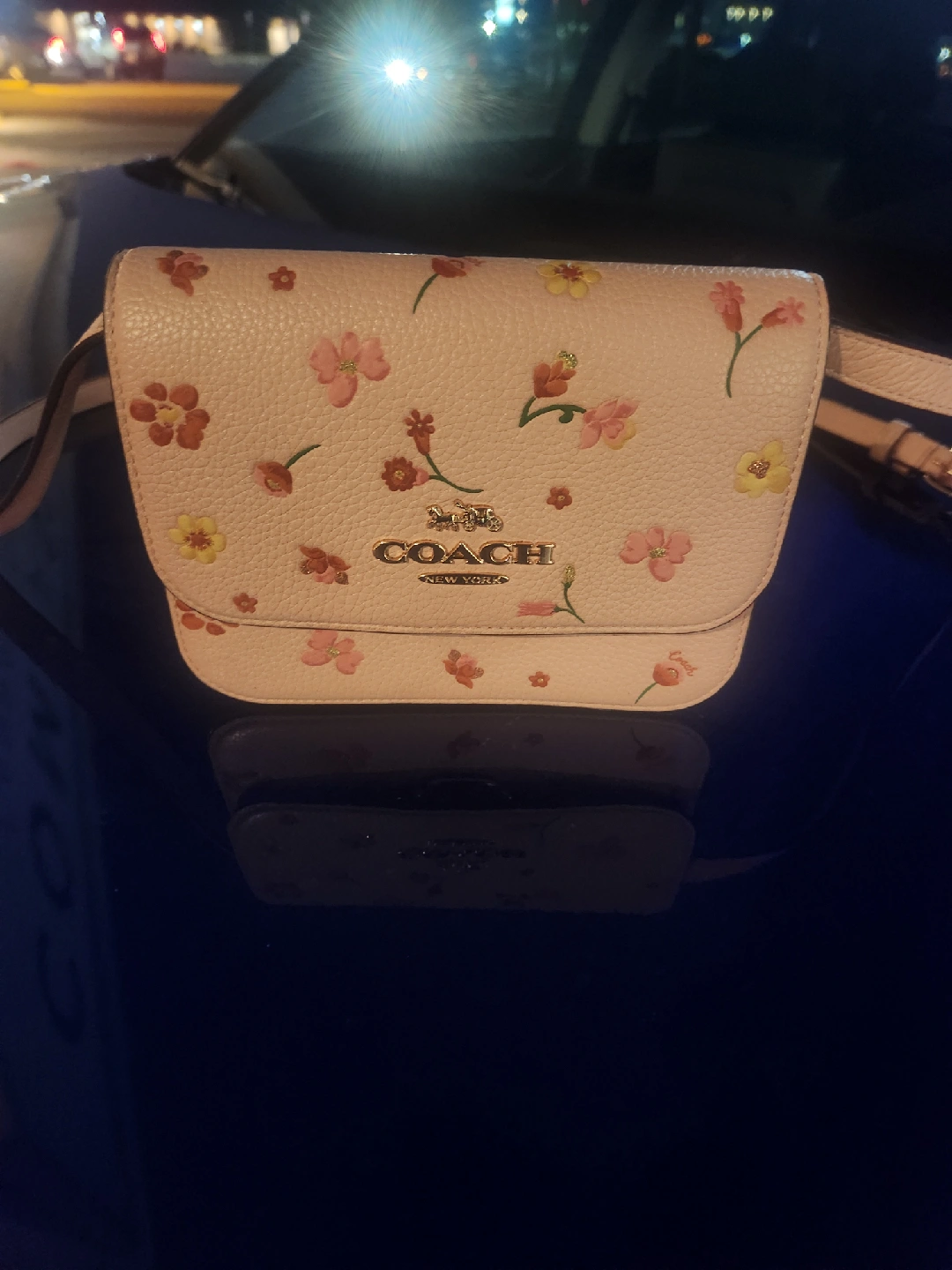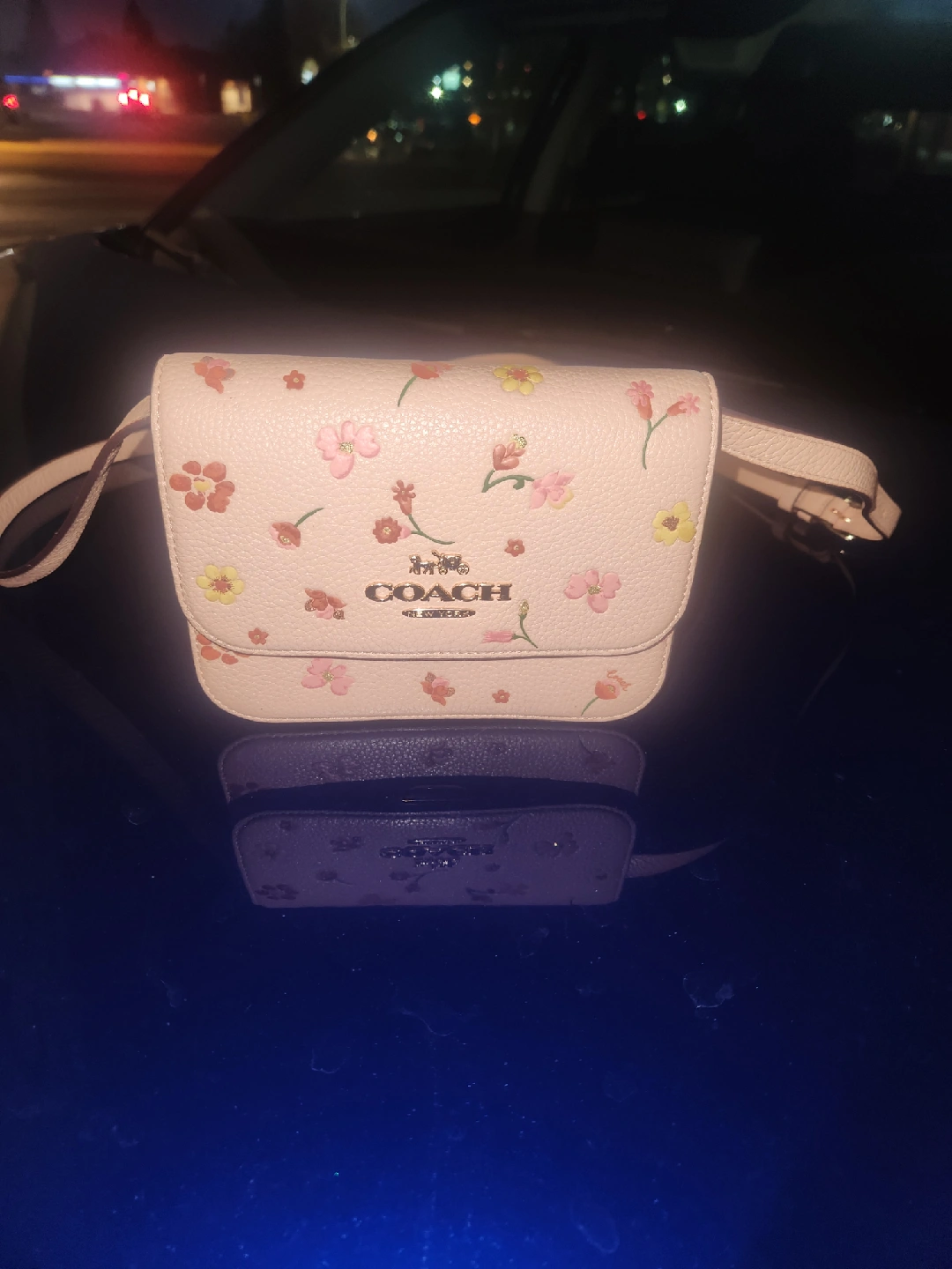 Selling a cute Coach belt bag with a floral design! It's in great condition and perfect for adding a touch of spring to your outfit. The bag features the classic Coach logo and has a convenient adjustable belt. Inside, you'll find the Coach label. A stylish and practical accessory!