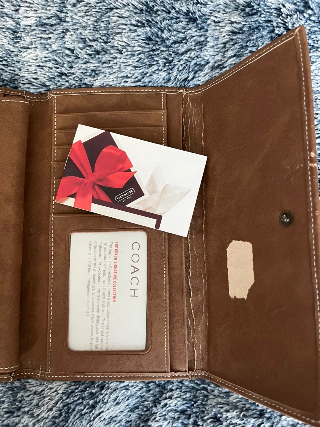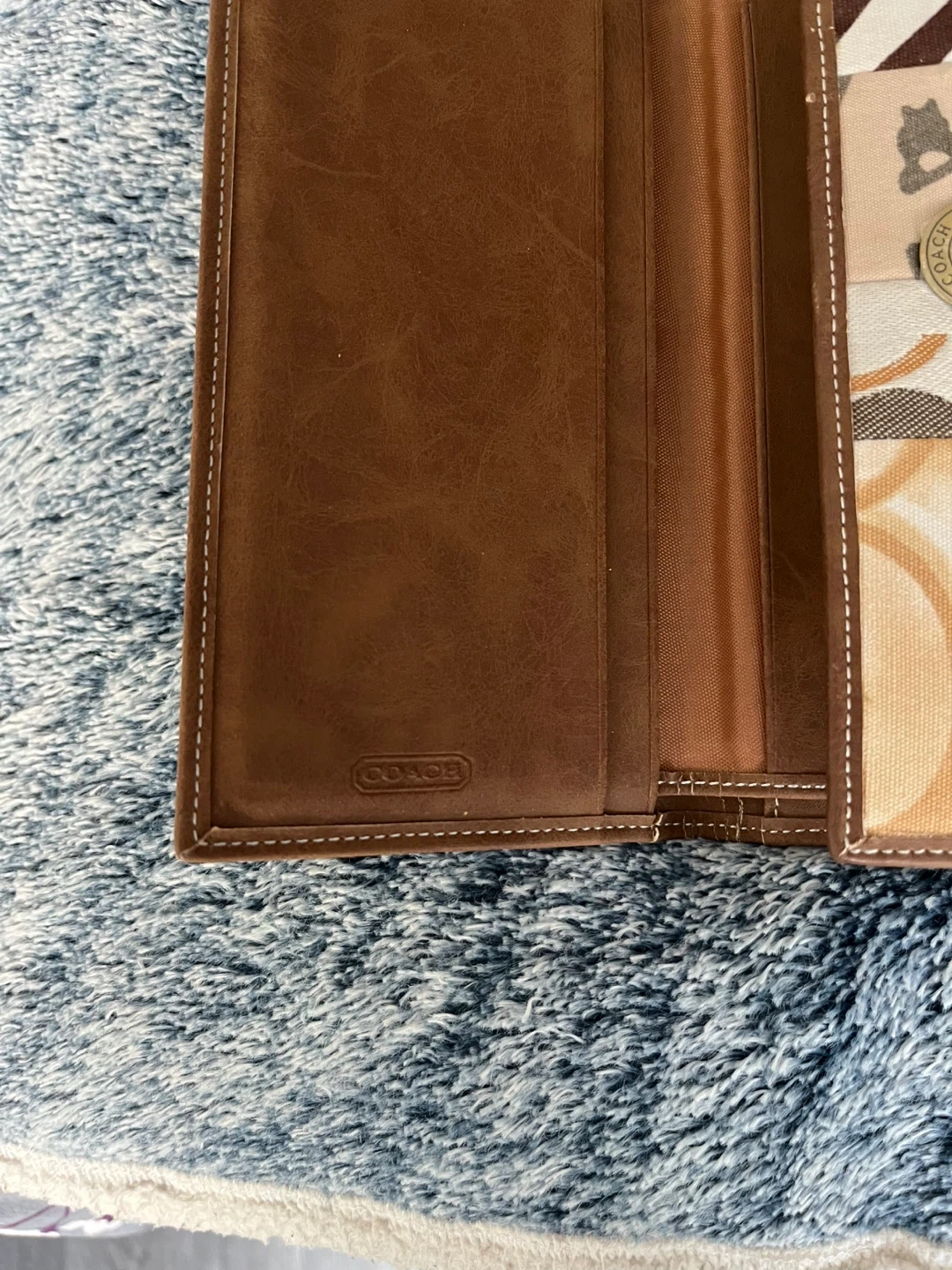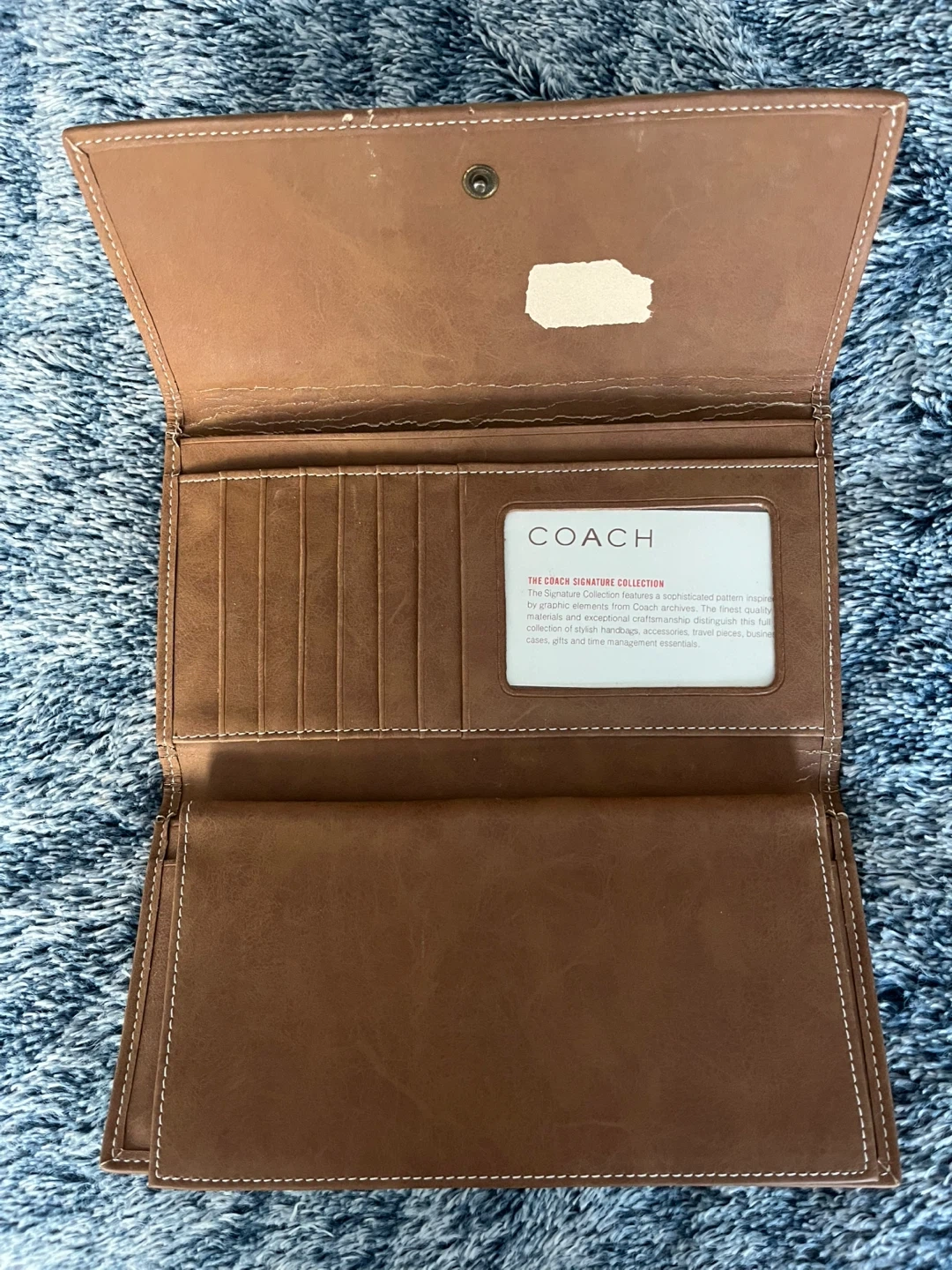 Vintage Coach Wallet - never used but was packed away and has some aged damage. Creasing and peeling where there had been a sticker. Perfect on the outside of the wallet. See pictures. SF & PF. $15 Pick up at Yonge & Davenport (Toronto)