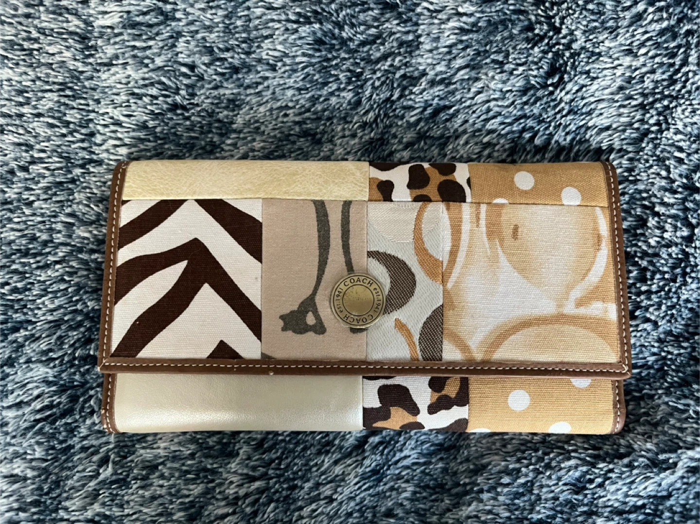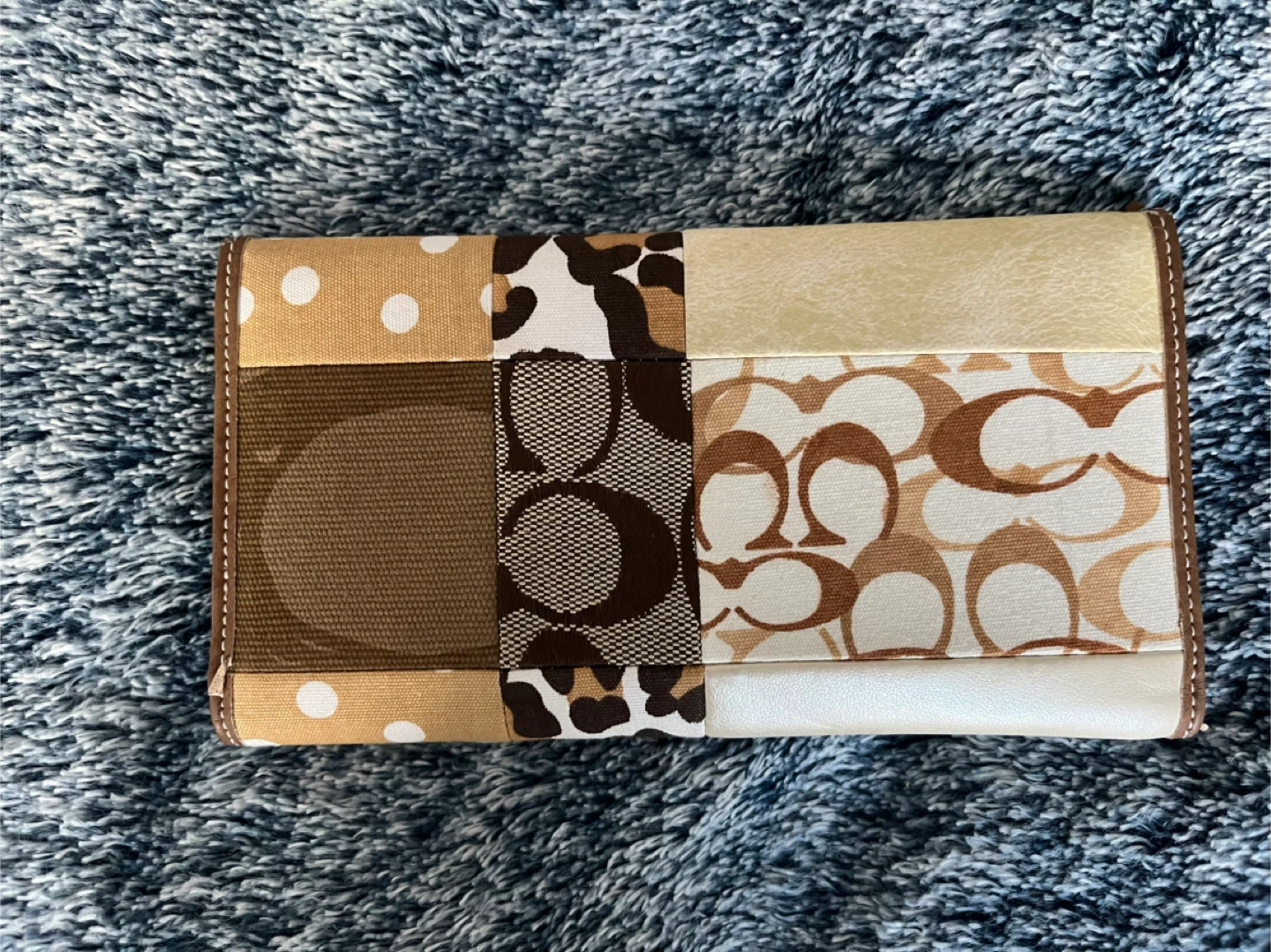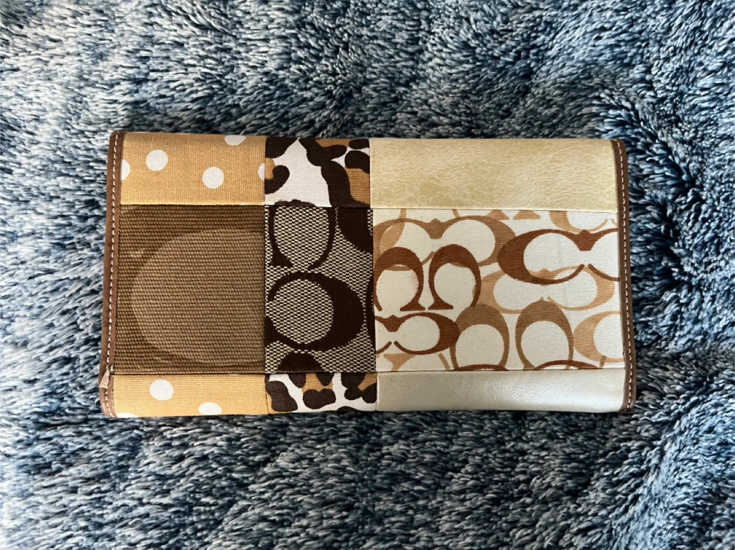 Vintage Coach Wallet - never used but was packed away and has some aged damage. Creasing and peeling where there had been a sticker. Perfect on the outside of the wallet. See pictures. SF & PF. $15 Pick up at Yonge & Davenport (Toronto)