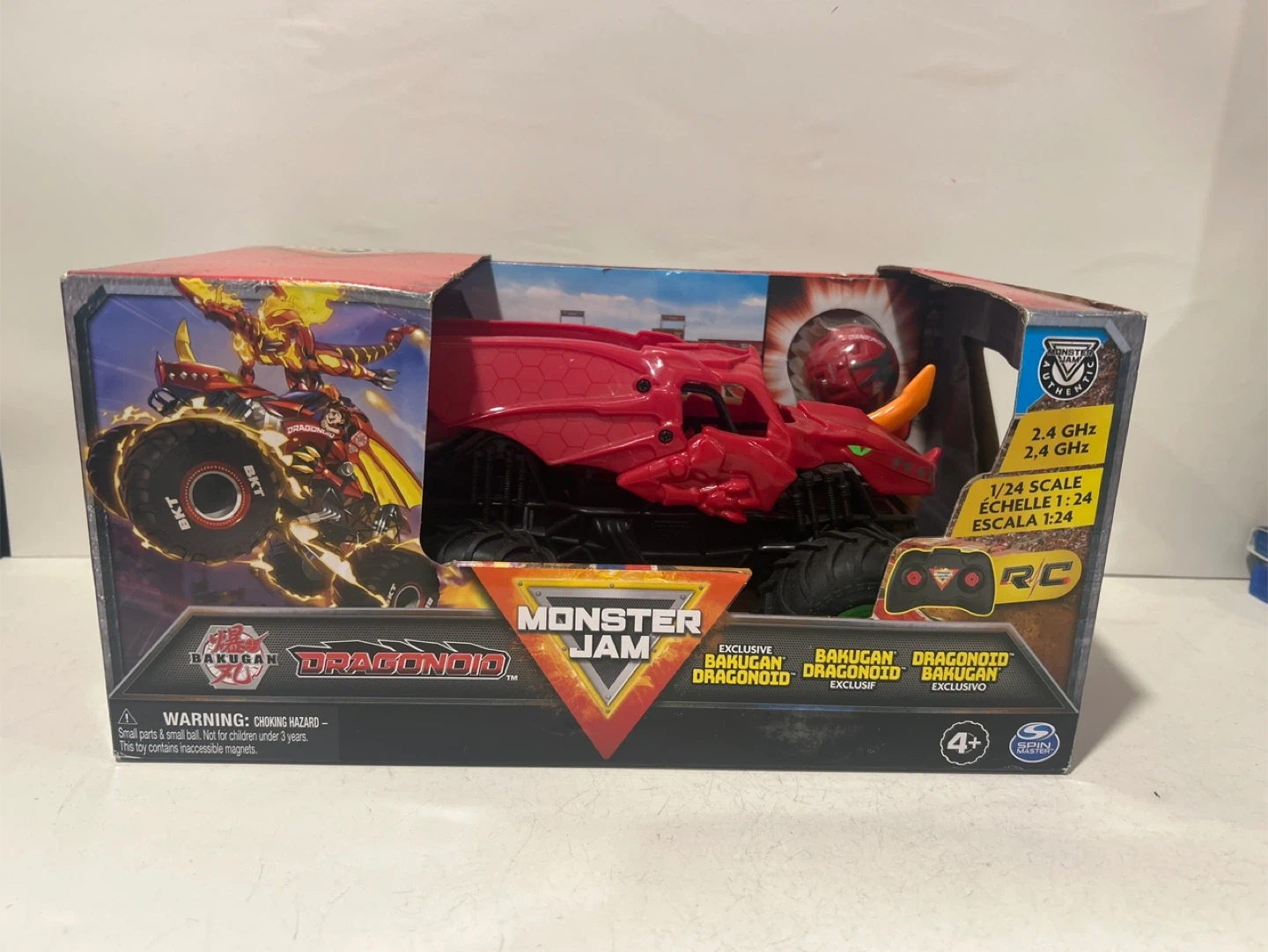 Selling a brand new Bakugan Dragonoid Monster Jam RC truck! It's still in the box and ready for some action. This exclusive Dragonoid design is perfect for Bakugan and Monster Jam fans alike. It operates on 2.4 GHz and is a 1/24 scale model. Recommended for ages 4 and up