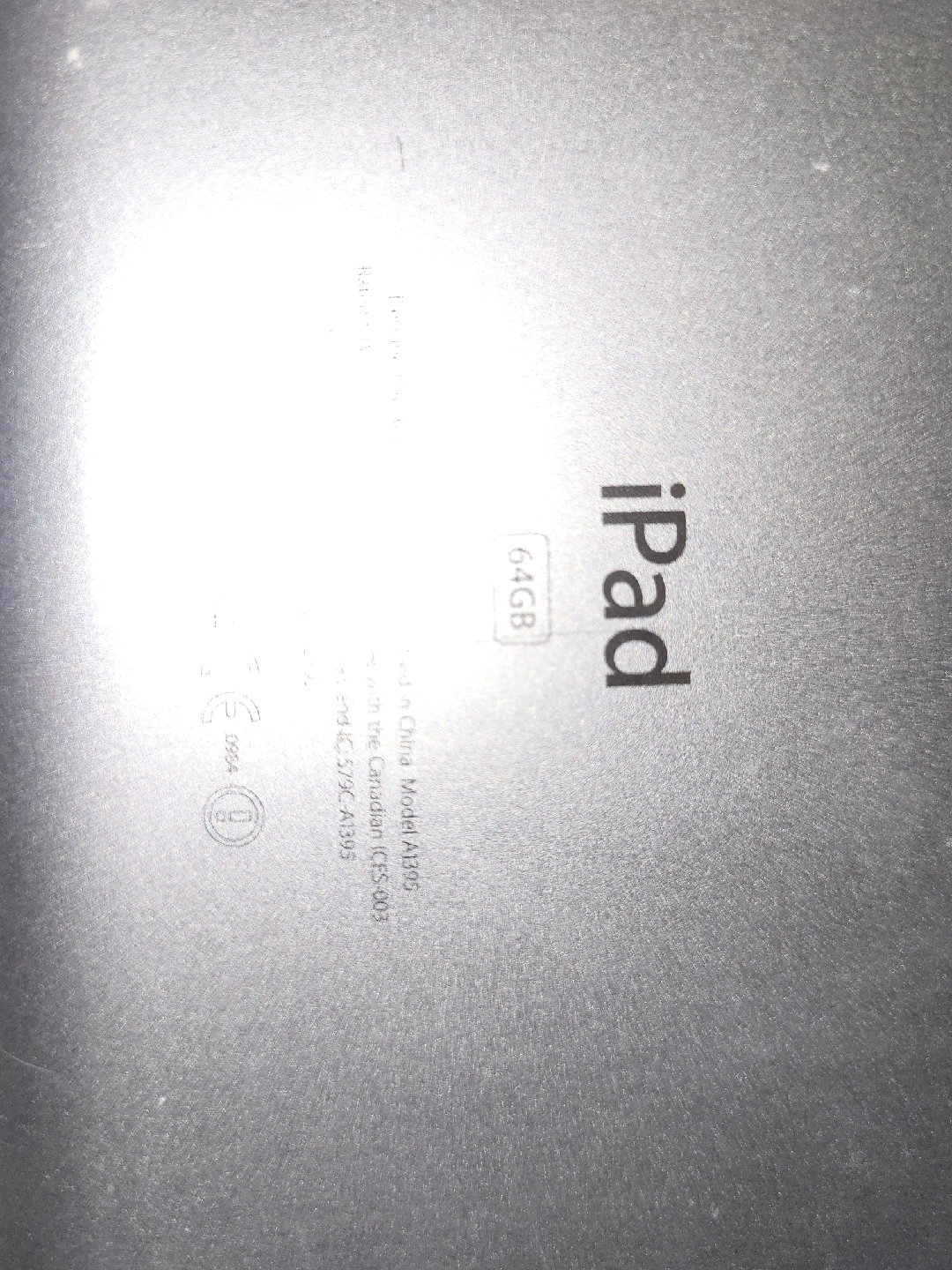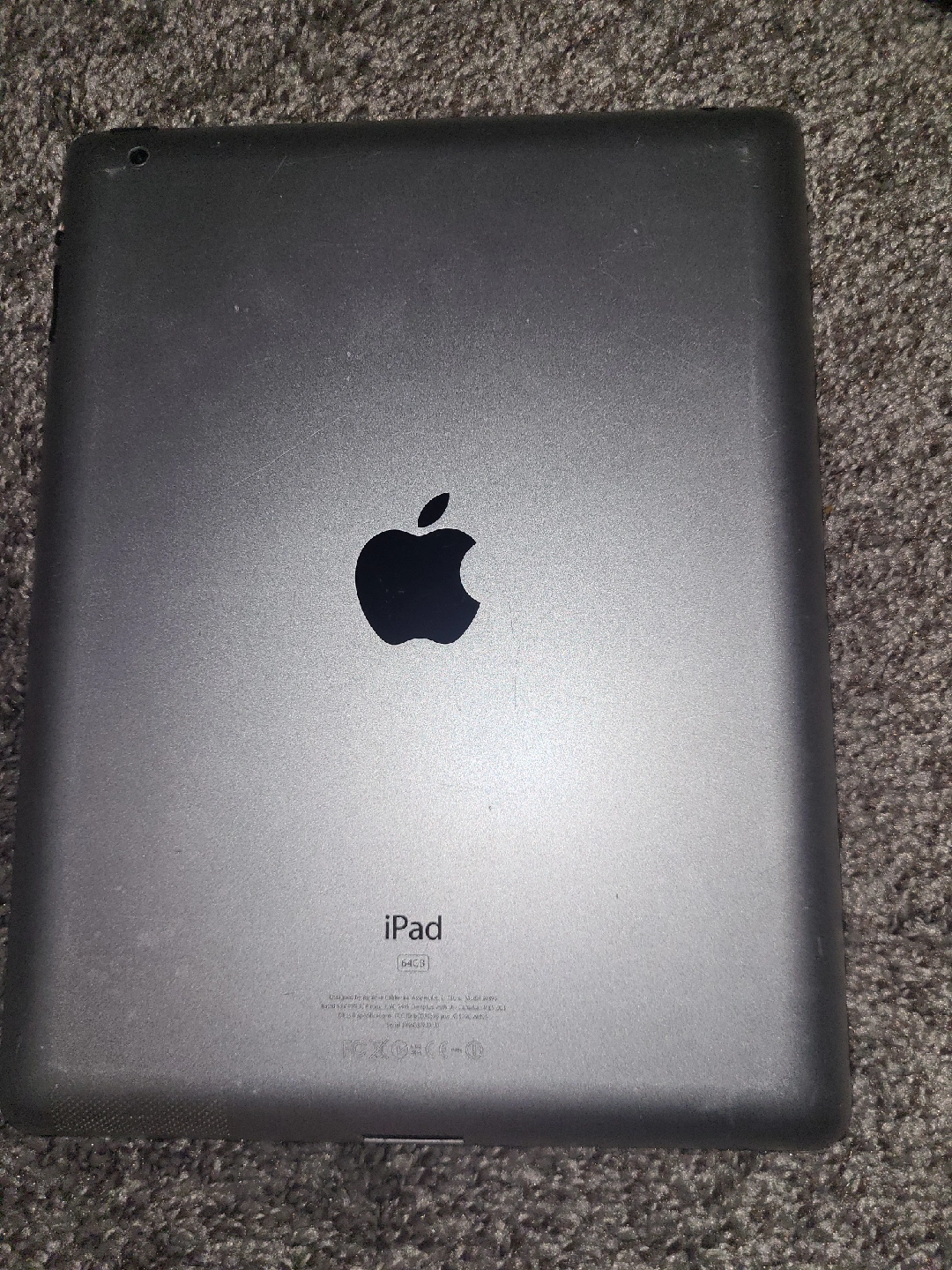 Selling a used Apple iPad with 64GB of storage. It has some visible wear and tear, including scratches on the screen. Still works great for browsing and watching videos