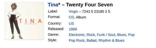 Twenty Four Seven-Turner, Tina (Artist) Format: Audio CD Condition: Used - Like new For Sale By: Owner
