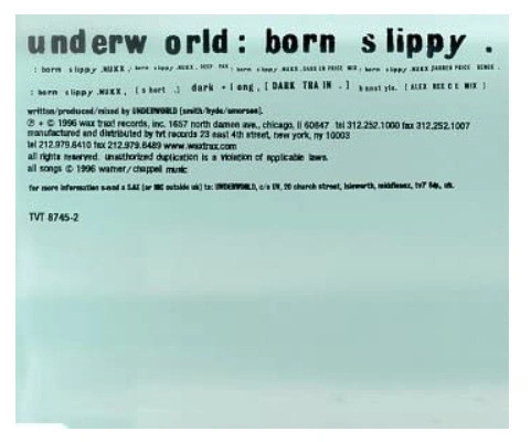 Born Slippy Remixes Underworld (Artist) Format: Audio CD Track Listings 1. Born Slippy, NUXX 2. Born Slippy, NUXX (Deep Pan) 3. Born Slippy, NUXX (Darren Price Mix) 4. Born Slippy, NUXX (Darren Price Remix) 5. Born Slippy, NUXX (short) 6. Dark + Long (Dark Train) 7. Banstyle (Alex Reece Mix) For Sale By: Owner