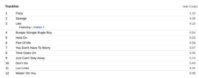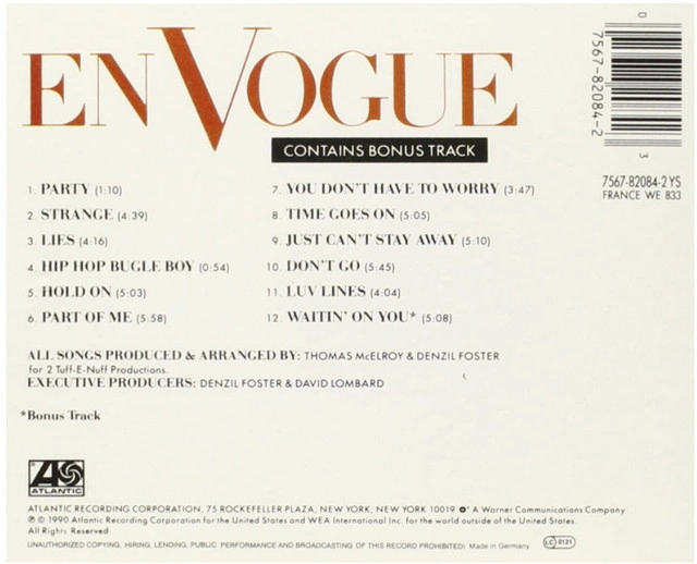 Born To Sing En Vogue (Artist) Format: Audio CD 1 Party 1:10 2 Strange 4:39 3 Lies Featuring – Debbie T 4:16 4 Boogie Woogie Bugle Boy 0:54 5 Hold On 5:03 6 Part Of Me 5:58 7 You Don't Have To Worry 3:47 8 Time Goes On 5:05 9 Just Can't Stay Away 5:10 10 Don't Go 5:45 11 Luv Lines 4:04 12 Waitin' On You 5:08 Condition: Used - Like new For Sale By: Owner