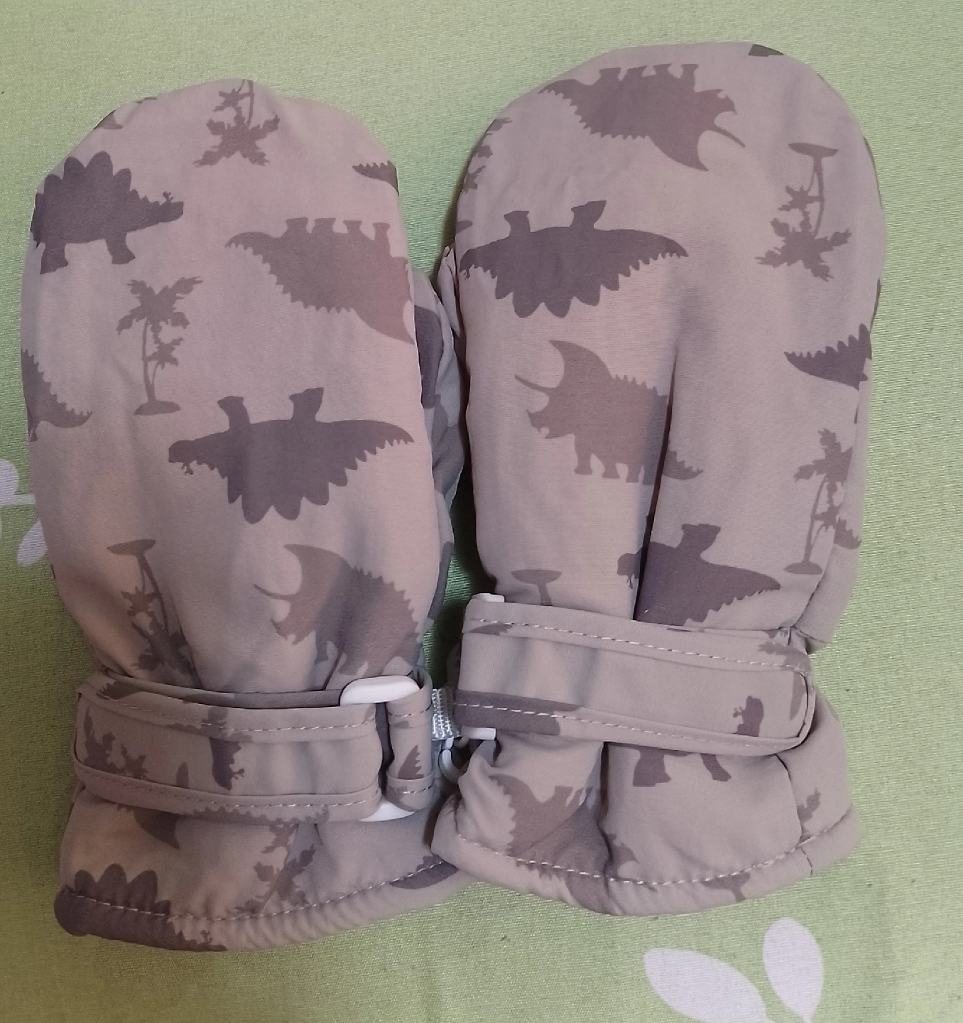 These adorable kids mittens feature a fun dinosaur print! They're perfect for keeping little hands warm during chilly weather. The mittens have a strap to help keep them in place and are in great condition Stays dry throughout the snow play Pickup in Etobicoke near Eglinton Ave & Martin Grove Rd