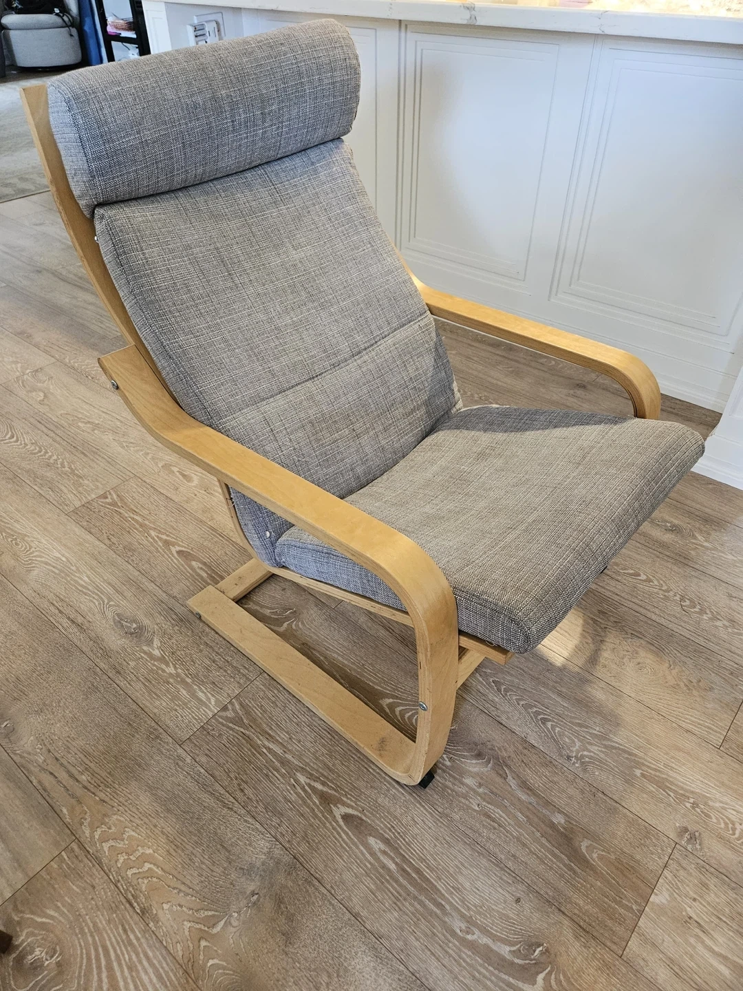 Selling a comfy IKEA Poang chair! It's in great shape and perfect for relaxing after a long day. The light grey colour fits well with any decor. It's super easy to assemble and disassemble if you need to move it around