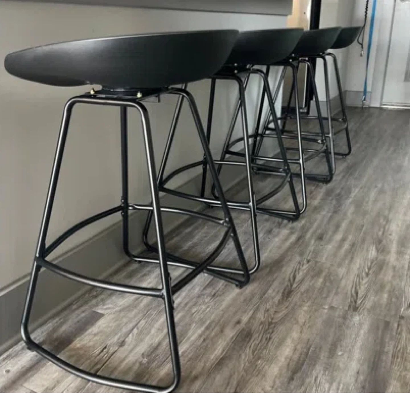 Selling a set of four sleek black bar stools! They're in great shape and would look fantastic in any kitchen or bar area. The modern design and sturdy construction make them both stylish and practical. Perfect for adding extra seating to your home