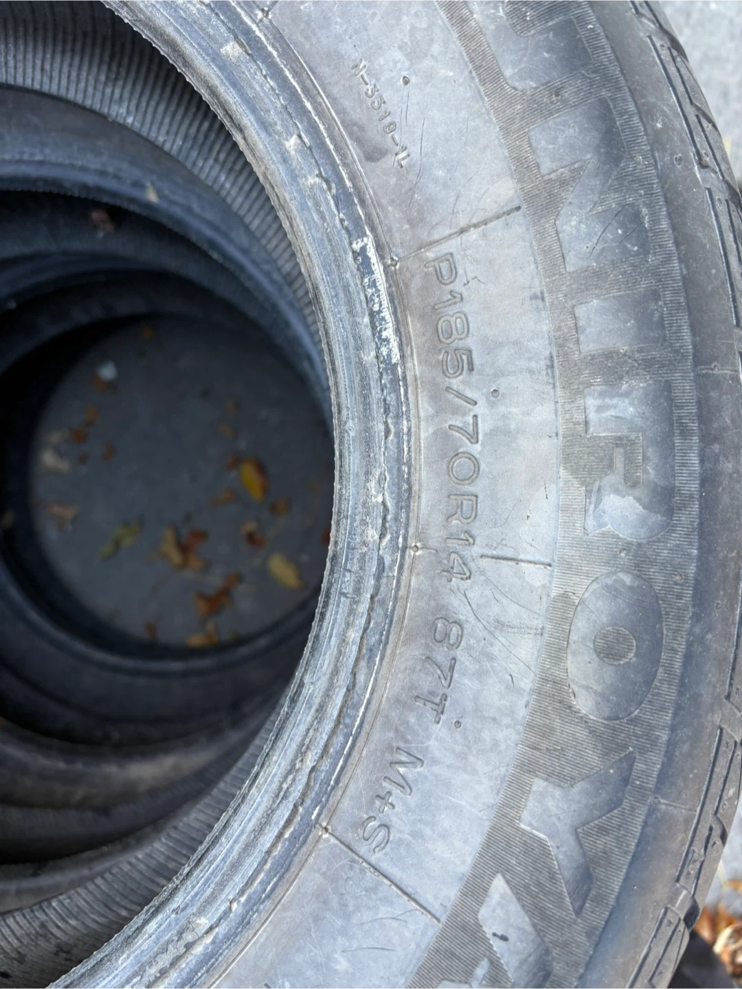 Selling a set of four Hankook tires. The size is P185/70R14. They are marked with 87T M+S. 25$ for each and 90$ for all .