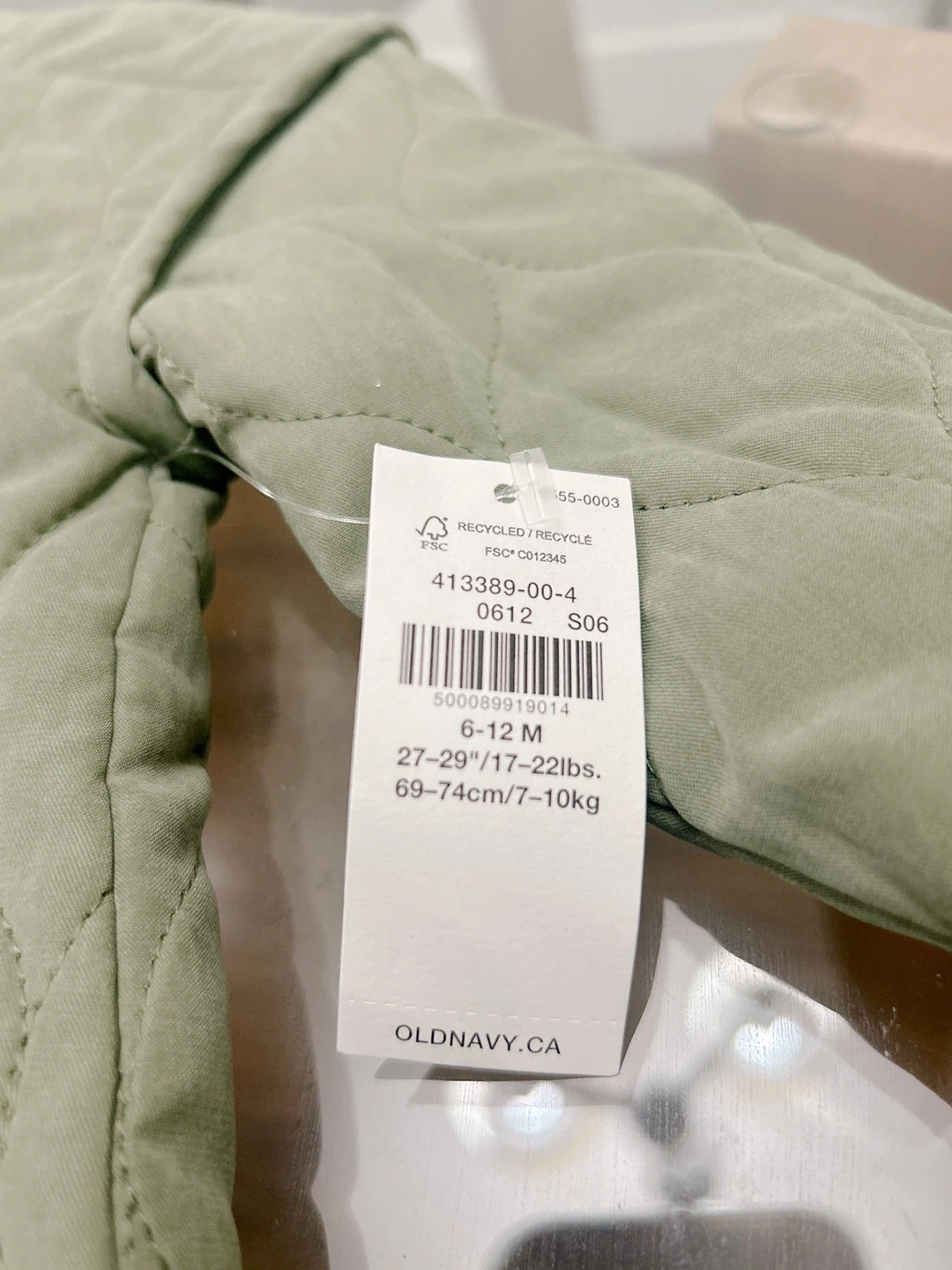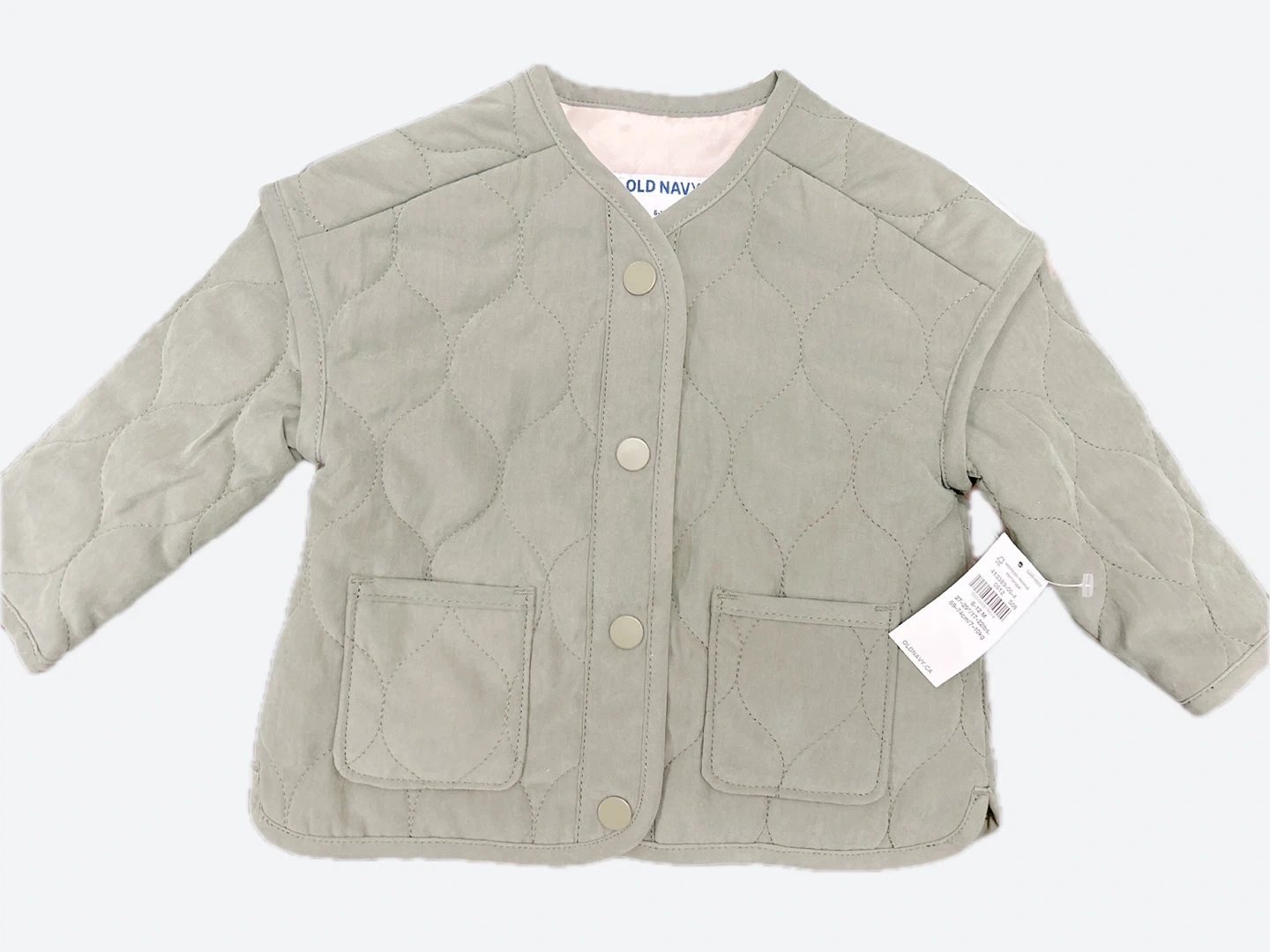This is an brand new Old Navy quilted jacket, perfect for your little one! It's size 6-12M and in great condition. The jacket is a soft, neutral colour that will match any outfit. It's lightweight and comfortable for your baby to wear