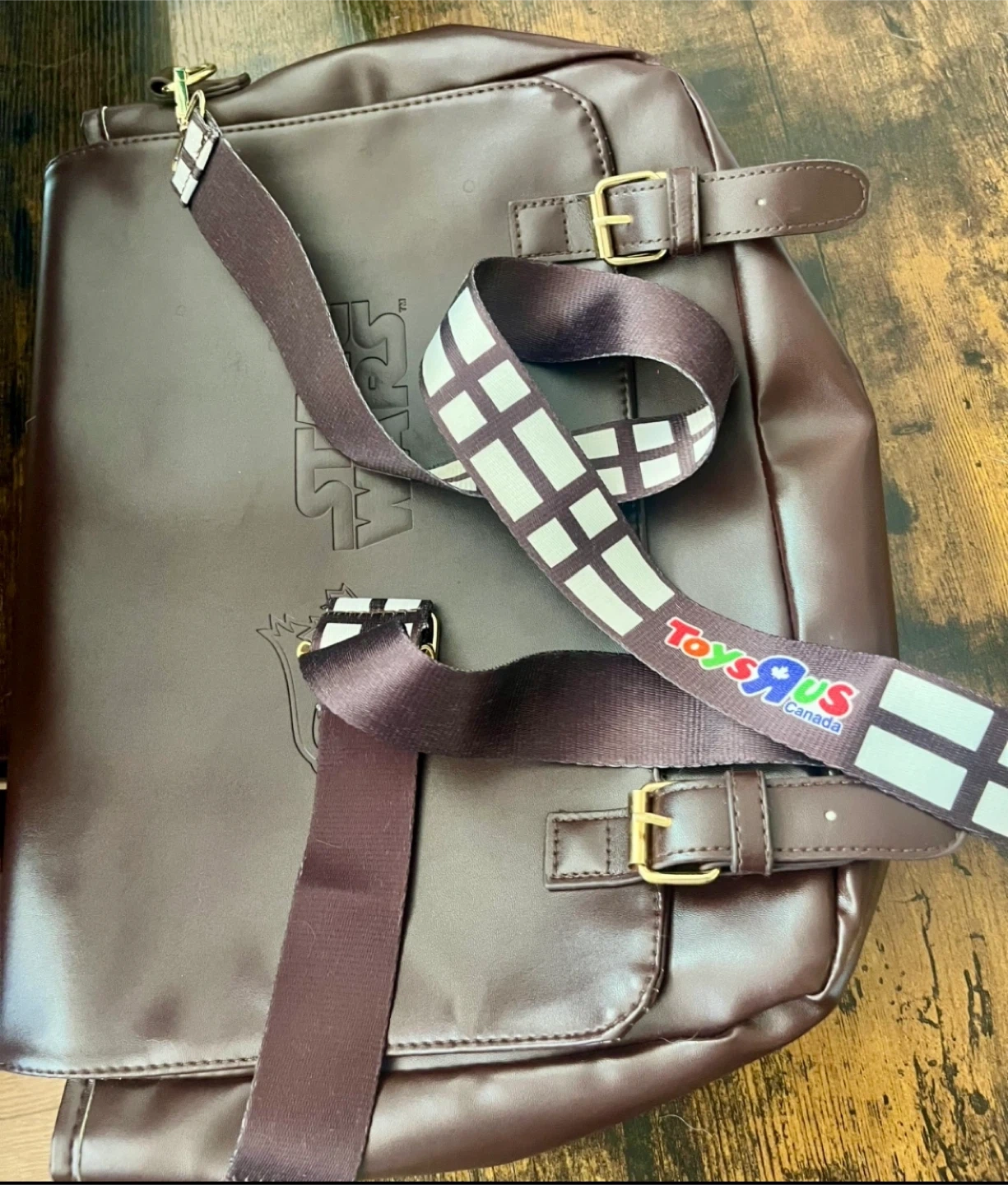 Here's a cool Star Wars messenger bag featuring the Toronto Blue Jays logo! It's a brown colour and has a shoulder strap. Perfect for any fan of Star Wars or the Blue Jays Pickup downtown and cash only!