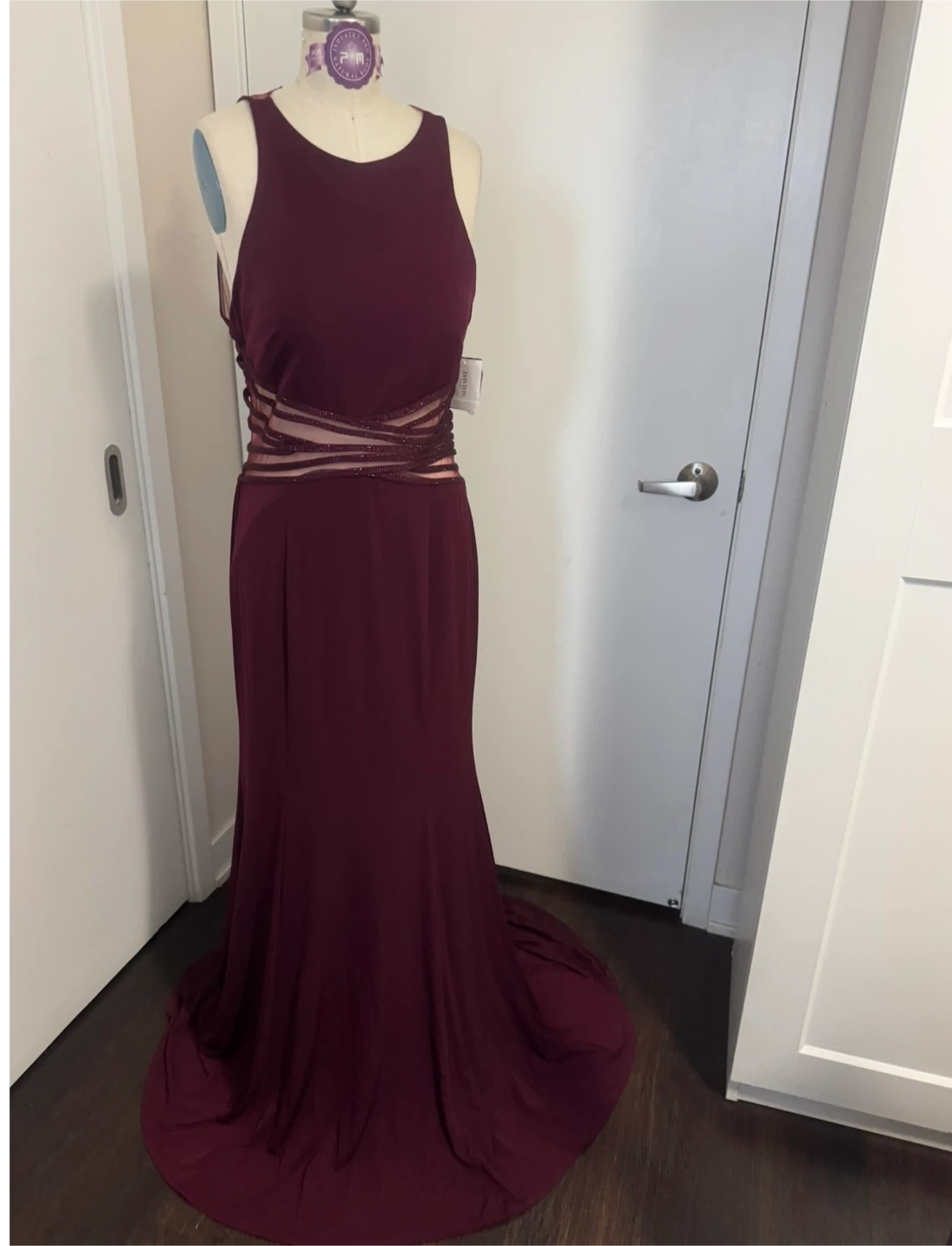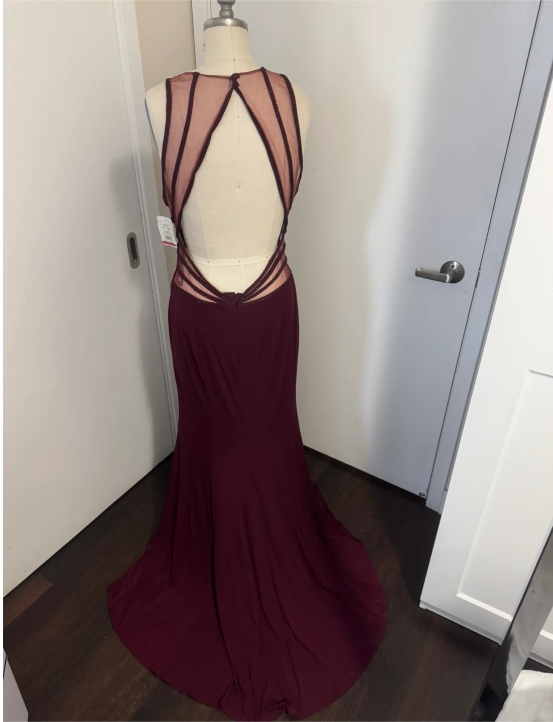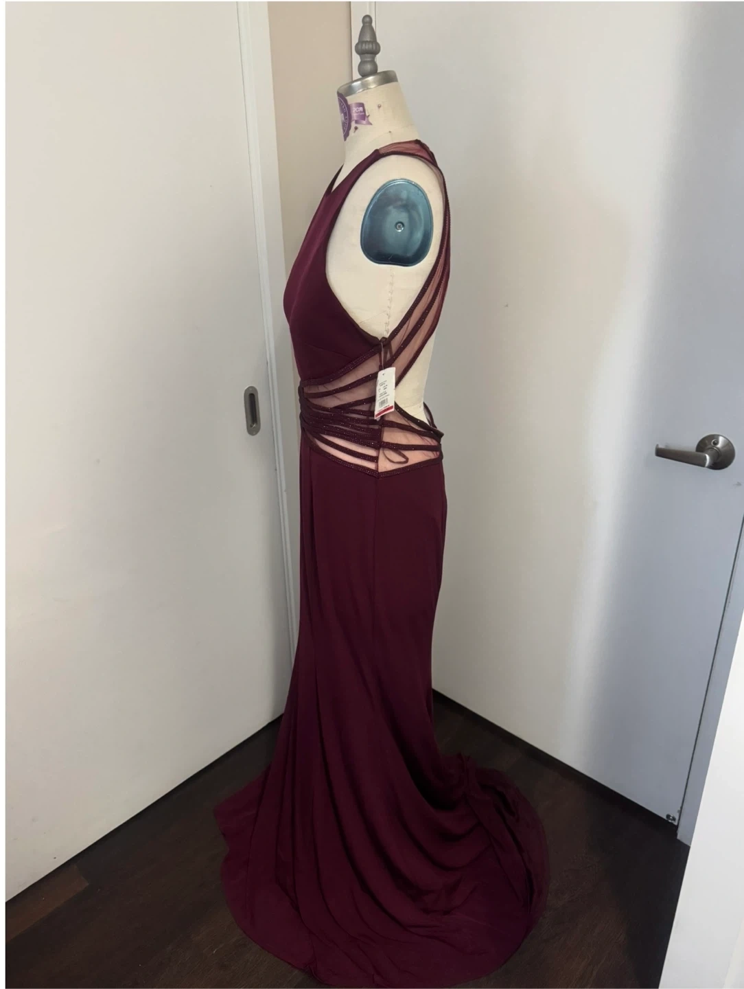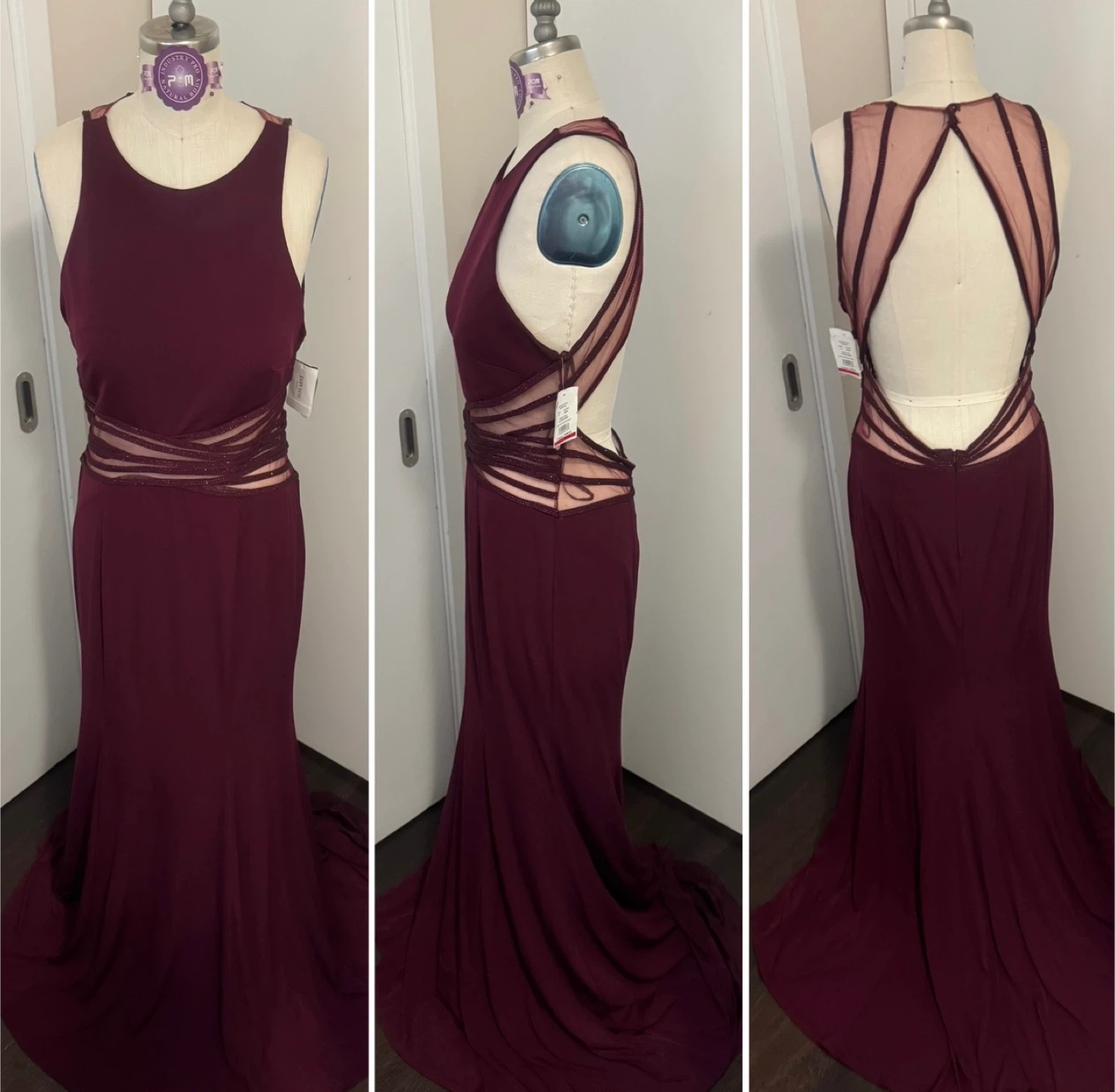 Ladies Size 14 Merlot Wine Colour Special Occasion Evening Dress - New With Tags On, note the dress is missing too tiny buttons that go at the back of the neck to hold the dress together, so it does need a small mend this is why I got it on sale. It’s absolutely stunning with an open back brand new never worn. This would literally cost you one dollar to fix you. Just need to go to Dollarama and pick up two Hook and eyes and sell them on and it will be fixed. Only selling because I lost weight and it will no longer fit. Pick up in the lobby of my condo, located in Scarborough at Finch and McCowan Please follow me so you’re notified when I post and definitely check out my other ads as I’m posting a lot of ladies dresses- cleaning out my closet!!