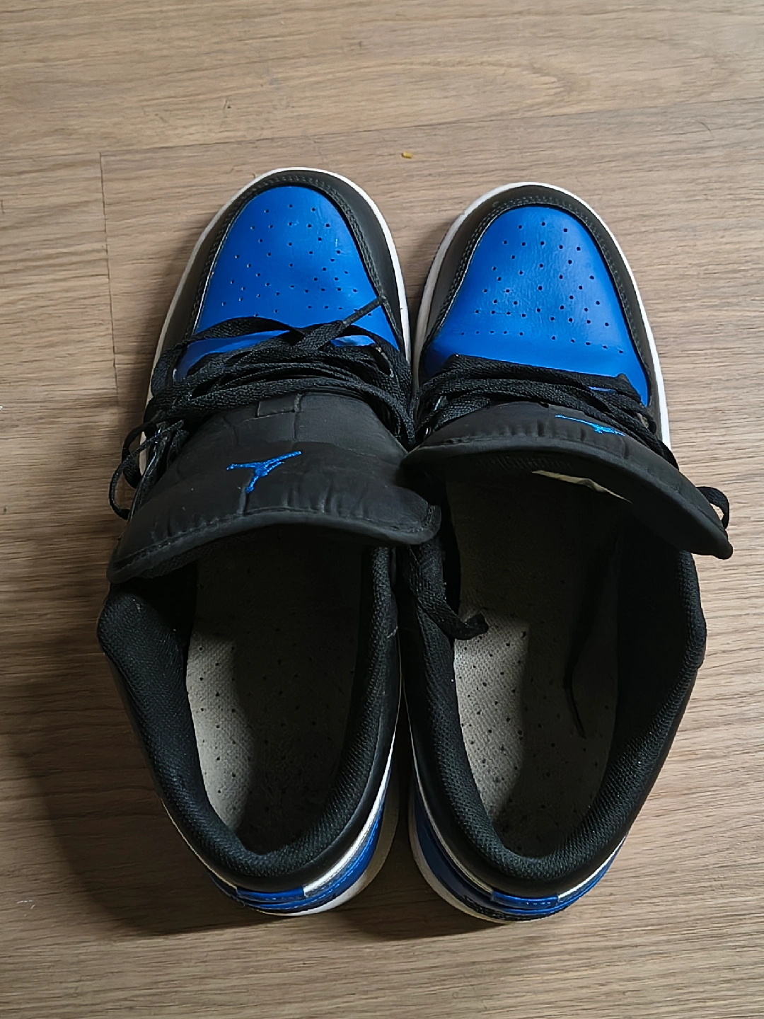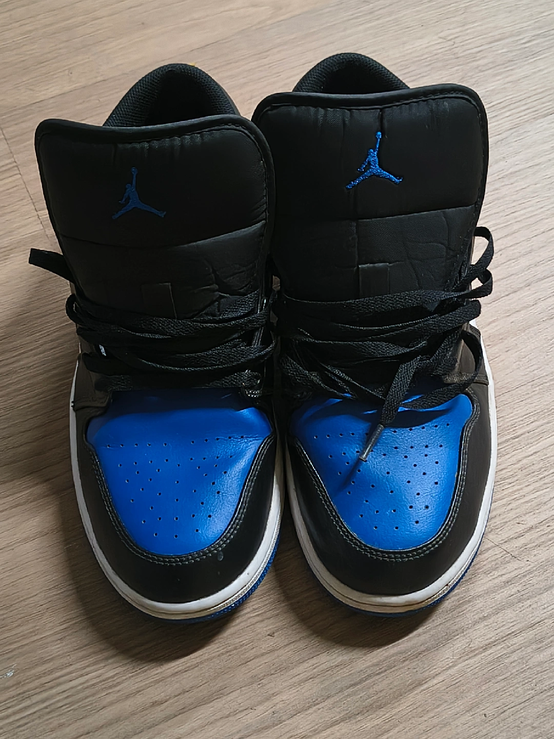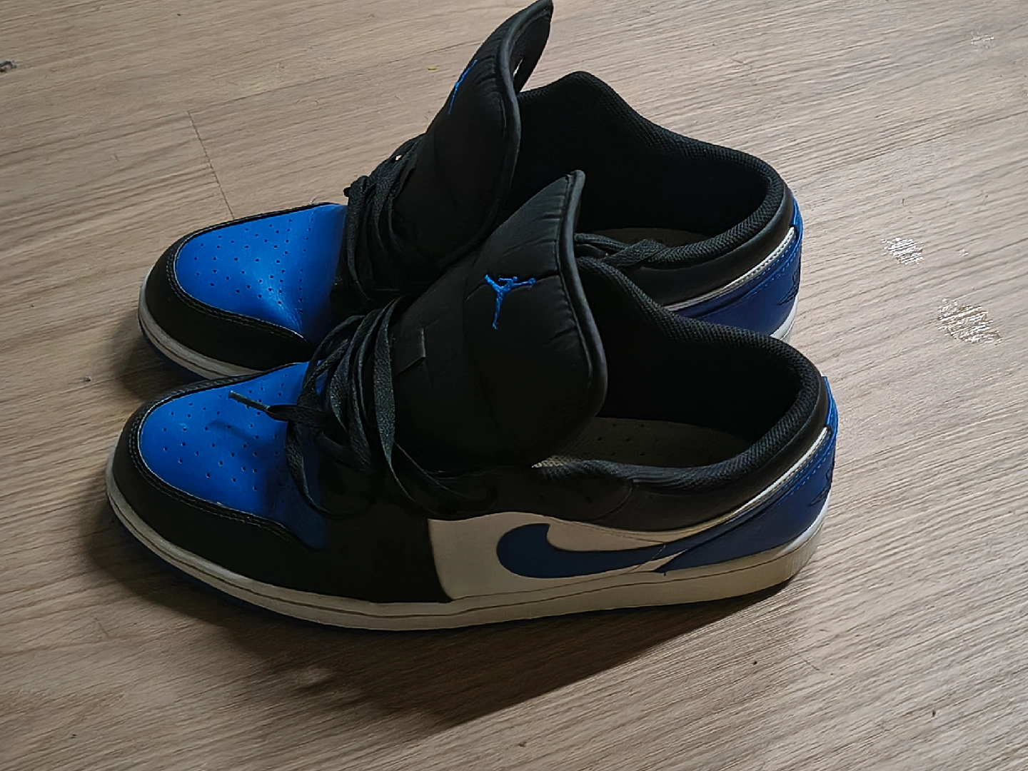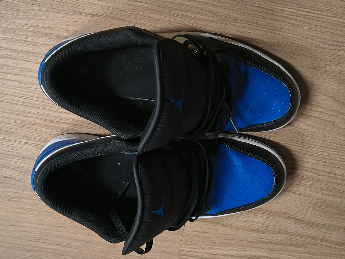 Selling a pair of Air Jordan 1 Lows! They're in good condition and feature a classic black, white, and royal blue colourway. Perfect for everyday wear or adding to your sneaker collection size 13 men