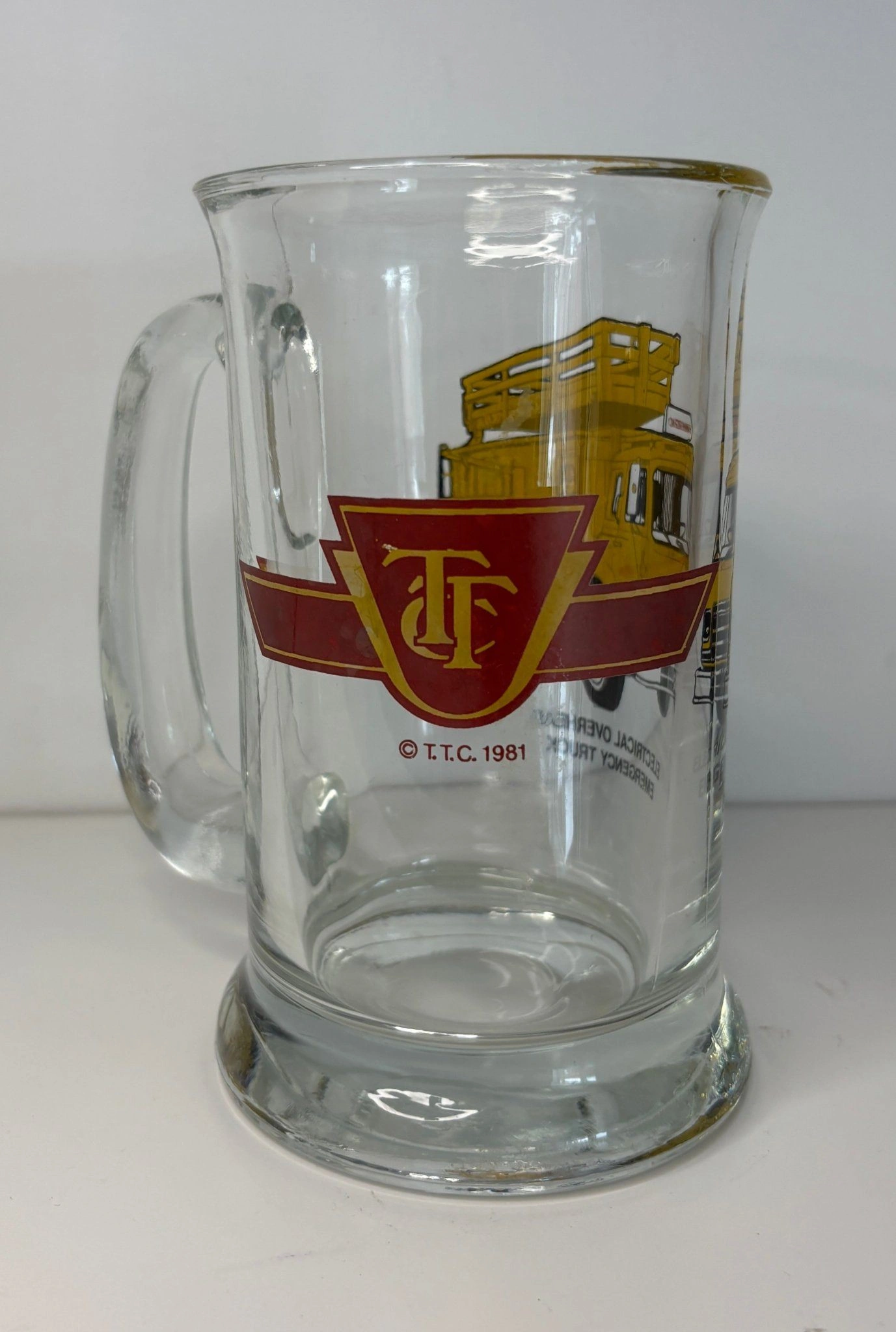 A great addition for any transportation or TTC collection, celebrate a piece of Toronto’s transit history with the Vintage Toronto Transit Commission Electrical Overhead Emergency Truck Beer Stein. Featuring a detailed illustration of the iconic TTC overhead emergency truck, this glass beer mug is perfect for collectors, transit enthusiasts, TTC employees and beer lovers. It will make a great collectible beer mug for your home bar or collection. Enjoy your favorite beverage or keep it tucked away in your display collection, add a touch of nostalgia to your drinkware collection with this vintage TTC beer stein. This Vintage Toronto Transit Commission Electrical Overhead Emergency Truck Beer Stein measures approximately 5.75 inches or 15cm tall and is in excellent condition. Local pickup is in Etobicoke near Islington and The Westway. We offer shipping and local delivery for this item. Please send a message about availability and cost associated with these respective services.