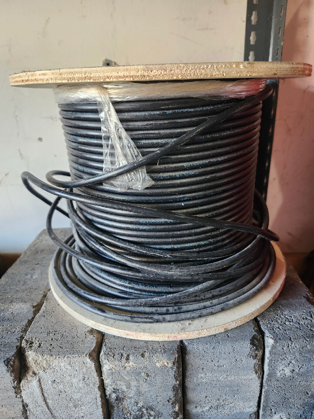 Selling a spool of black cable. It looks like there's a good amount left on the spool, perfect for your wiring needs