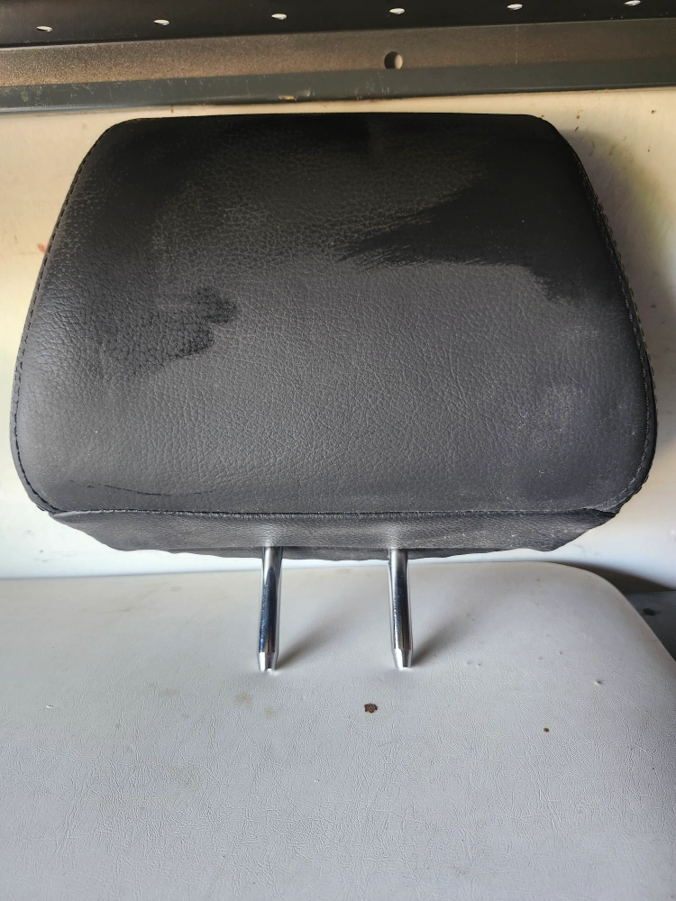 Selling a used car headrest in black. It's in good condition and ready to be used in your vehicle