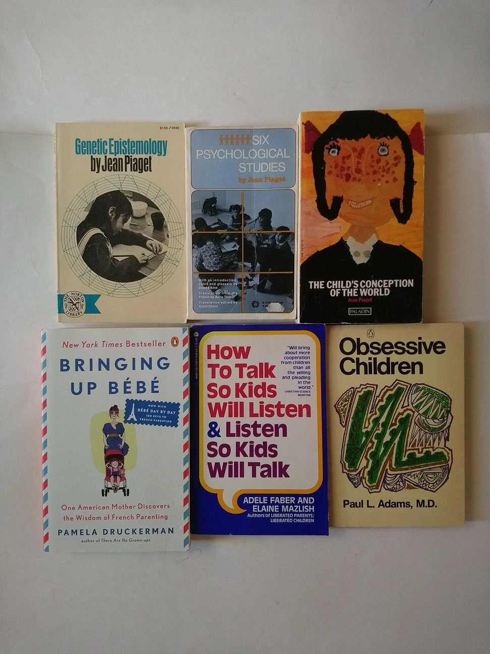 Location: Yonge and College /downtown Toronto Top row: $8 each. Bottom row: $7 each. Cash only; prices are firm. Jean Piaget: - Genetic Epistemology - Six Psychological Studies - The Child's Conception of the World Also: - Bringing Up Bebe: One American Mother Discovers the Wisdom of French Parenting - Pamela Druckerman - How to Talk So Kids Will Listen & Listen So Kids Will Talk - Adele Faber & Elaine Mazlish - Obsessive Children - Paul L. Adams Feel free to check out my other book posts as well!