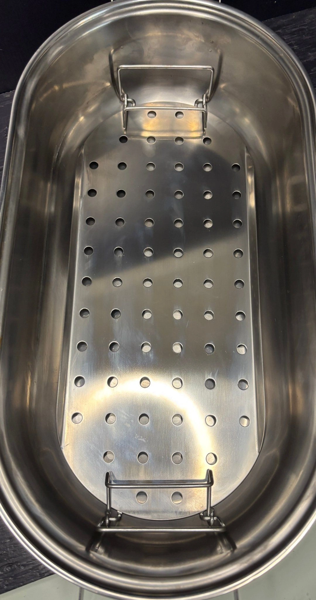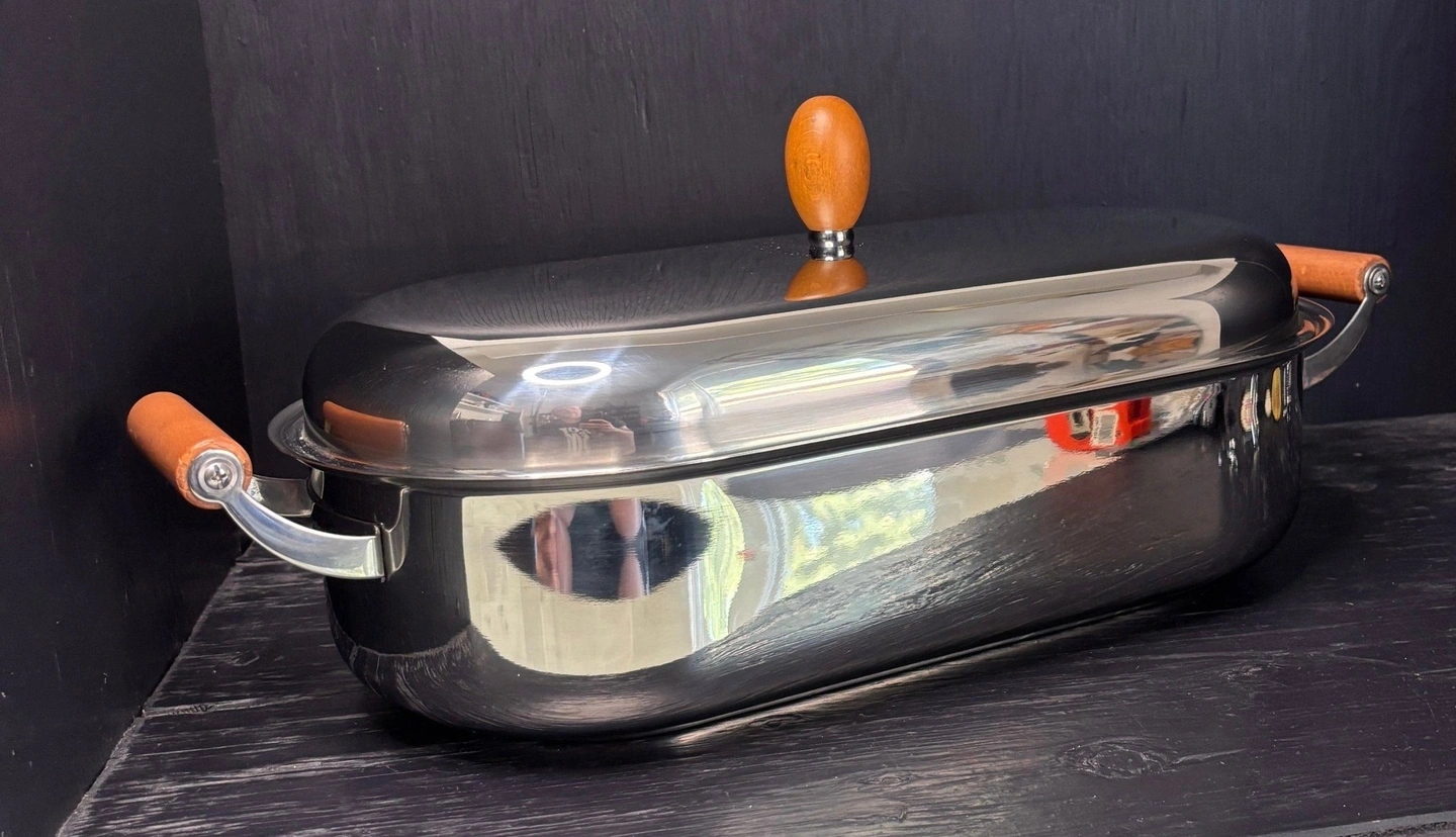 Achieve restaurant quality results at home with the Frabosk Stainless Steel Steamer Poacher. Made with quality stainless steel, this versatile kitchen poacher and steamer lets you steam or poach fish and seafood, vegetables, dumplings and more with precision and a touch of class. Its elegant, durable design ensures even heat distribution for perfectly cooked food every time. The rust resistant steamer is dishwasher safe and built to last you for years of preparing and serving your favorite meals. It will give you even heat distribution that allows for more consistent cooking, while the well designed handles allow for ease of grip and transport from oven to table. This Frabosk Stainless Steel Steamer Poacher measures approximately 16x9 inches with the pan being 4.5 inches deep without the lid. Add a versatile and stunning kitchen essential to your cookware with this Frabosk Stainless Steel Steamer Poacher. Local pickup is in Etobicoke near Islington and The Westway. We offer shipping and local delivery for this item. Please send a message about availability and cost associated with these respective services.