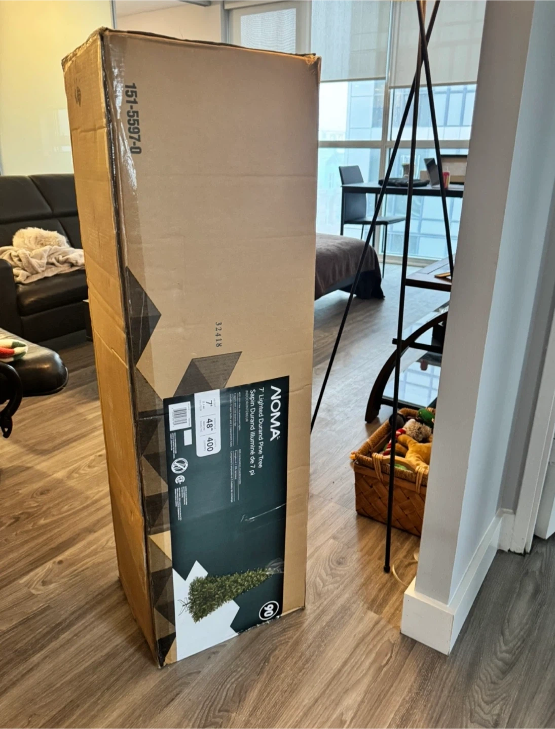 Selling a NOMA 7 ft Pre-Lit Flocked Christmas Tree. It's in great condition and comes with the original box! This tree will add a festive touch to your home during the holidays *not open to offers, pickup near Bloor & Yonge*