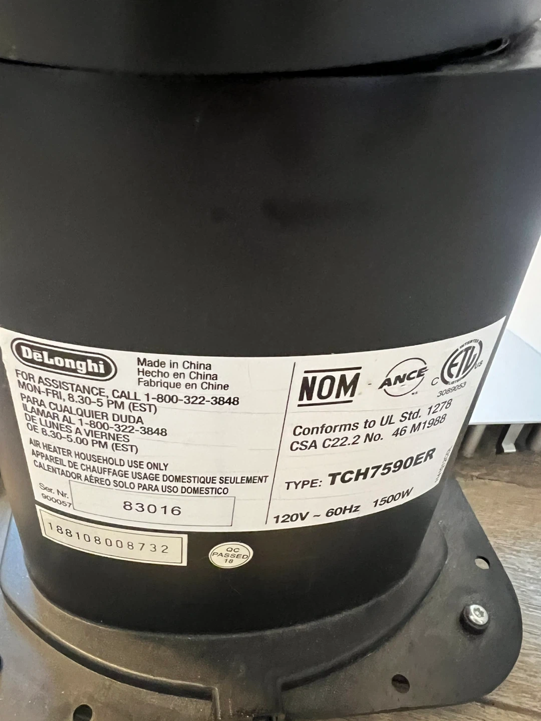 Selling a DeLonghi tower heater. It's in good working condition and ready to keep you warm during these cold months! The model number is TCH7590ER.