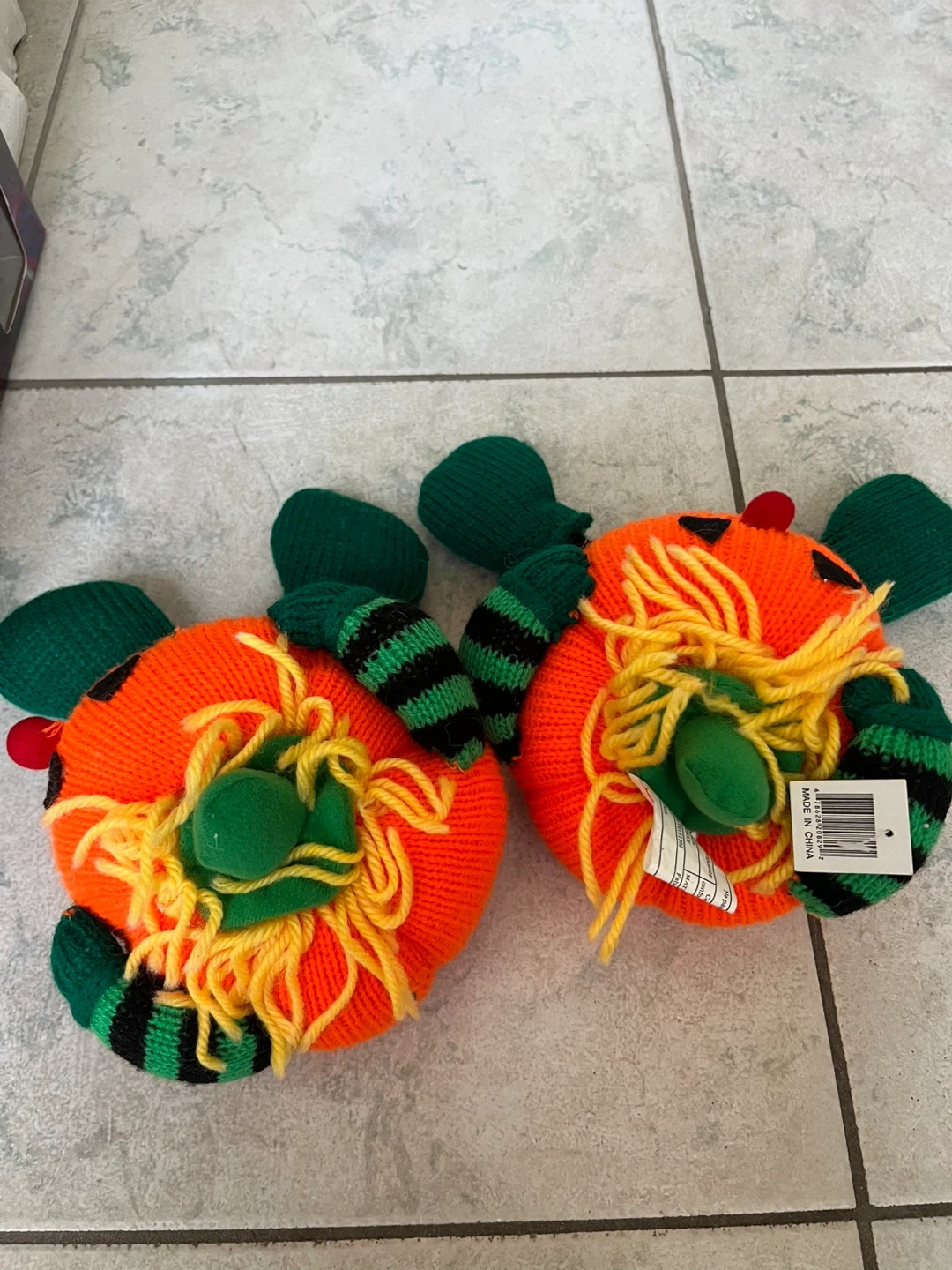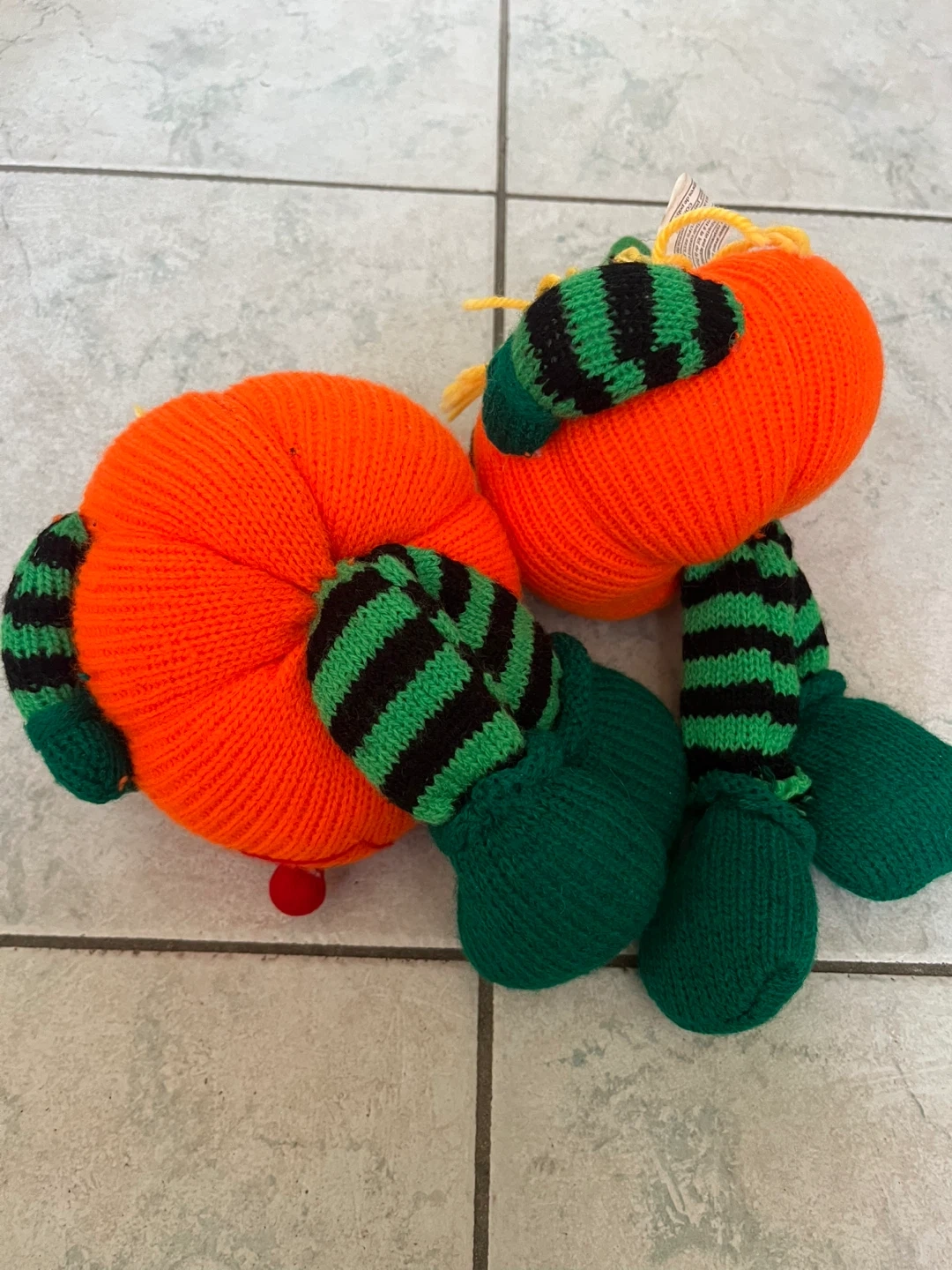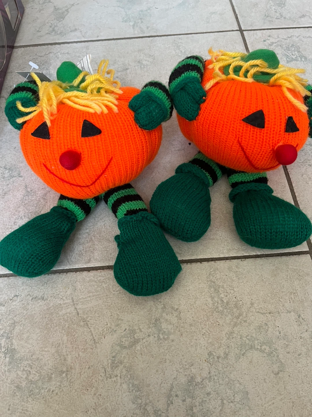 These adorable pumpkin plush dolls are perfect for adding a touch of Halloween charm to your home! They have a friendly, stitched smile and cute little green legs. They're in great condition and ready to bring some festive cheer!