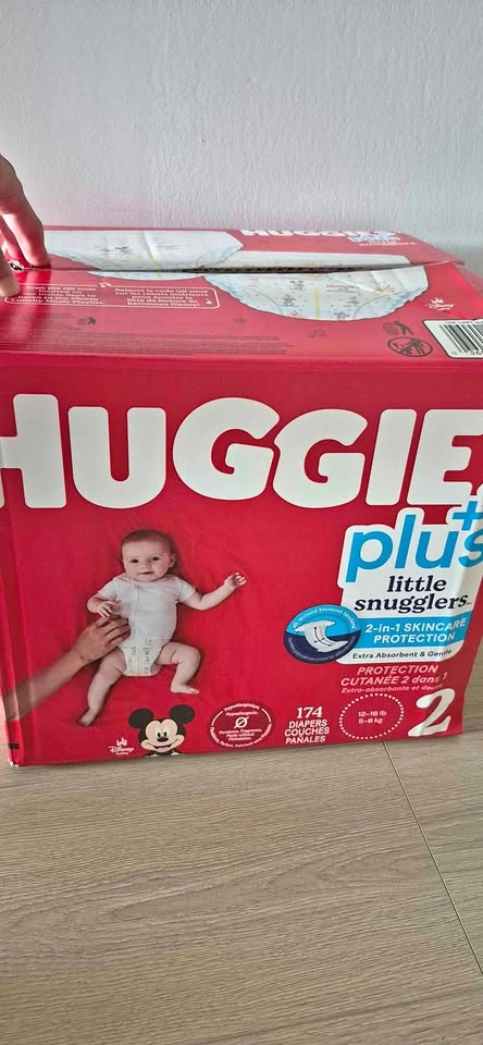 One box 3 pack total 174 size2. Our baby move to next size
