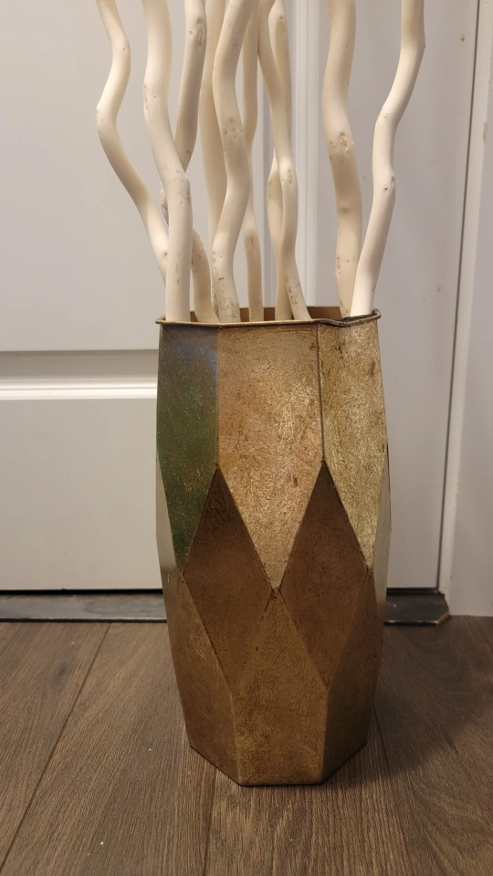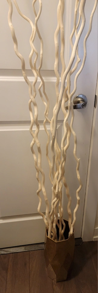 These white decorative branches add a touch of natural elegance to any room. They come in a stylish hammered gold metal vase that complements the branches beautifully. Perfect for adding a unique and modern accent to your home decor. Use them together as is or seperately with a vase of your choice!