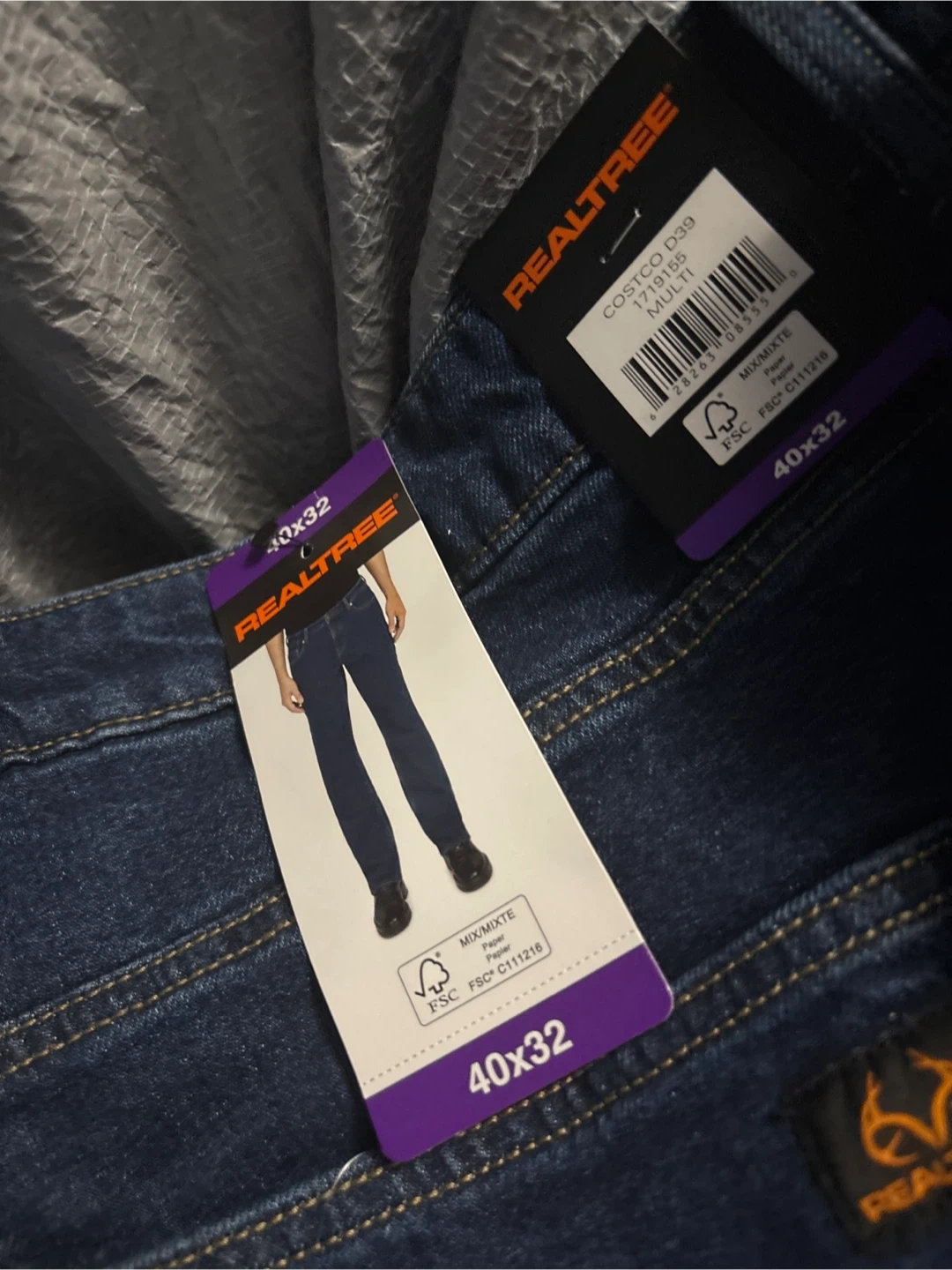 Selling a pair of Realtree jeans in size 40x32. new condition with the tags still attached! The jeans have a classic denim look with a Realtree logo on the back pocket. The inside lining features a plaid pattern.