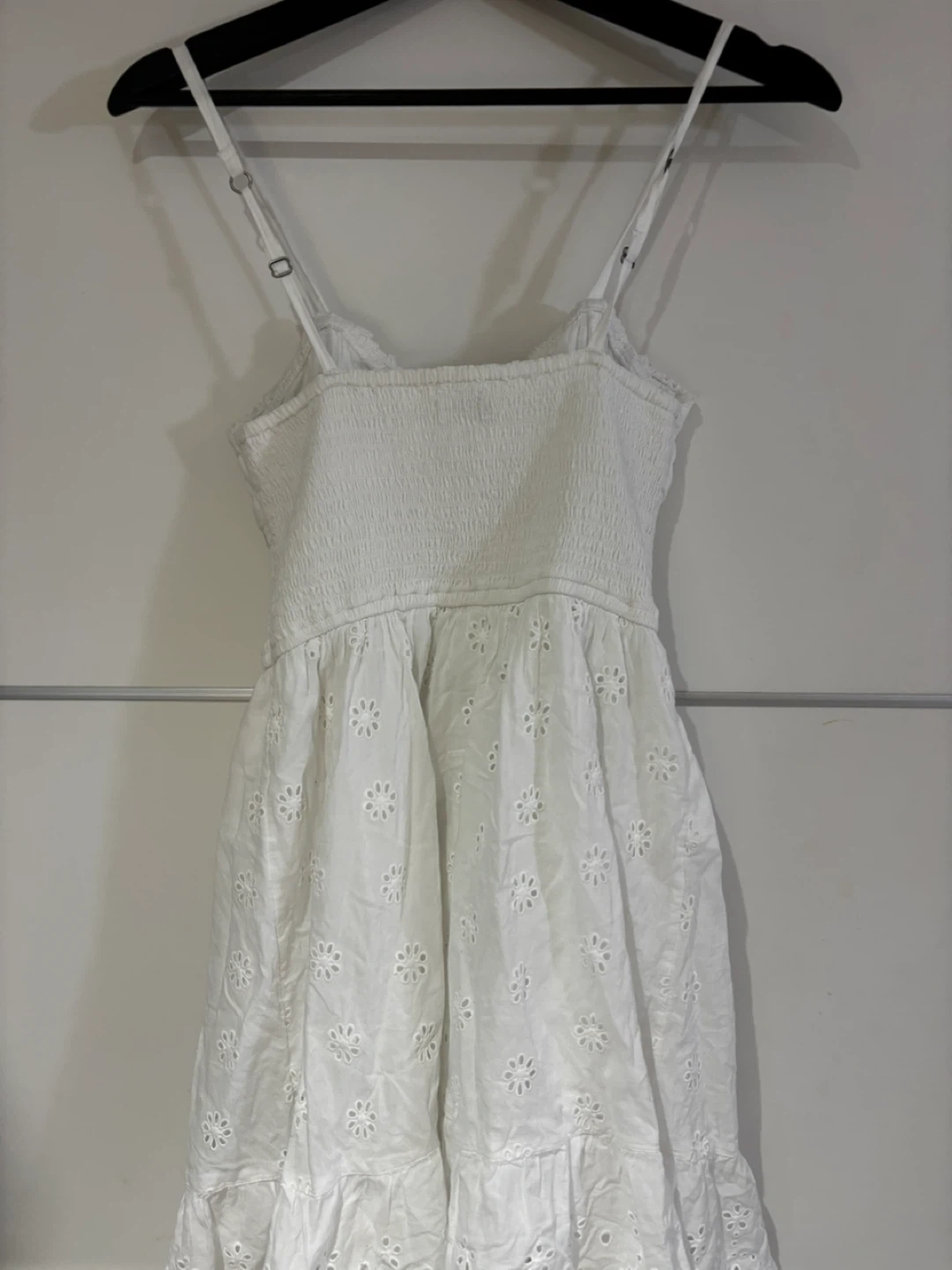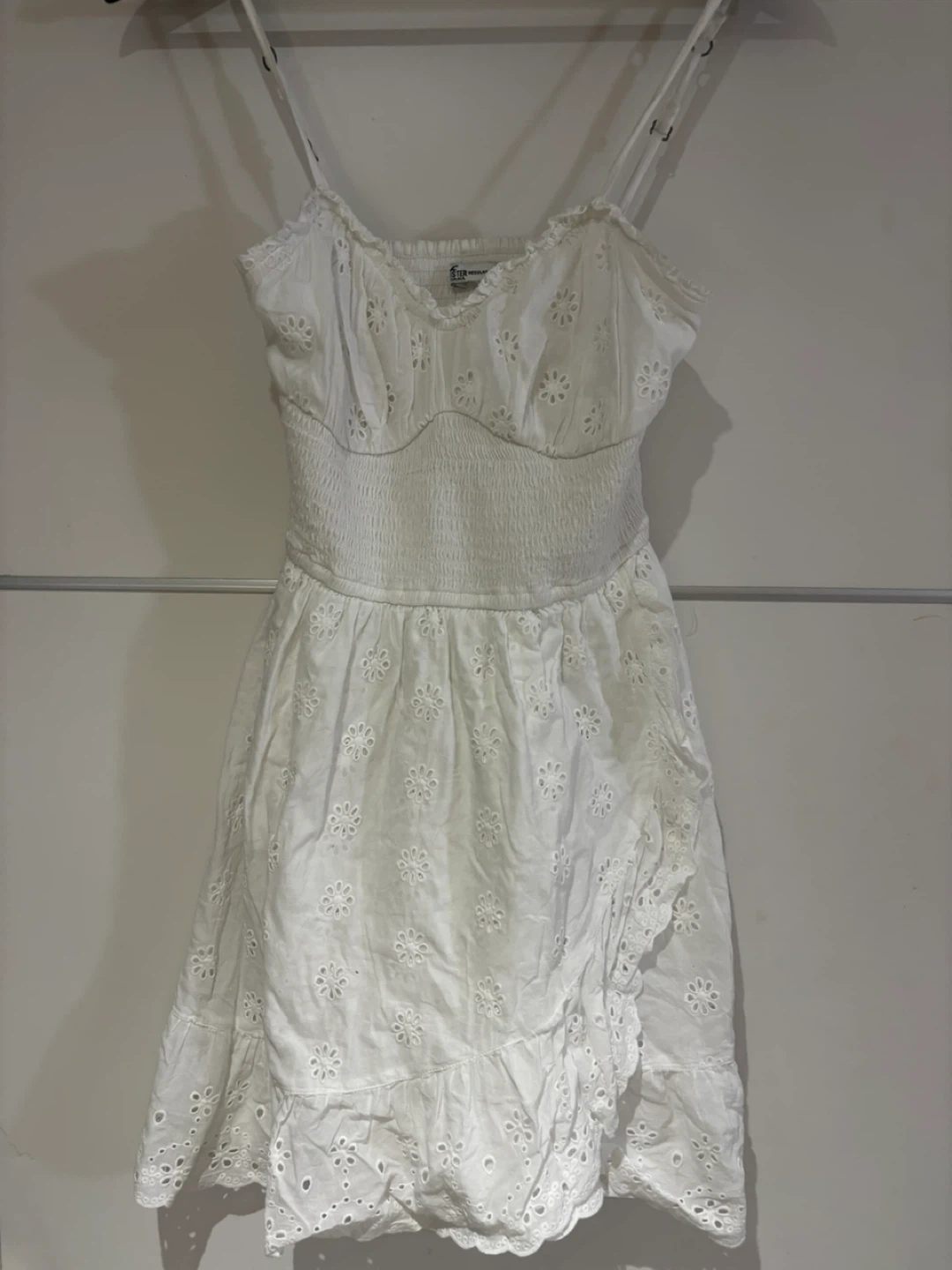 Selling a cute white sundress from Hollister! It's a size small and in great condition. Perfect for summer days and casual outings. The dress features a delicate floral pattern and adjustable straps. It's made from a lightweight material, making it super comfy for warmer weather