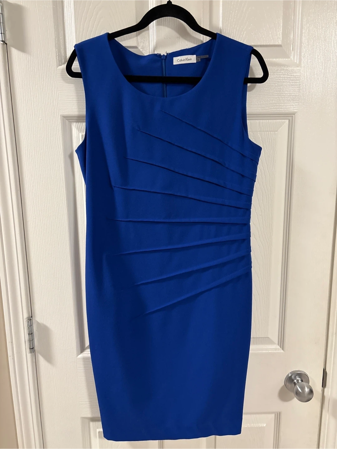 Selling a beautiful blue Calvin Klein dress in size 8. It's in great condition and ready for a new home! The dress has a classic and flattering design that would be perfect for many occasions