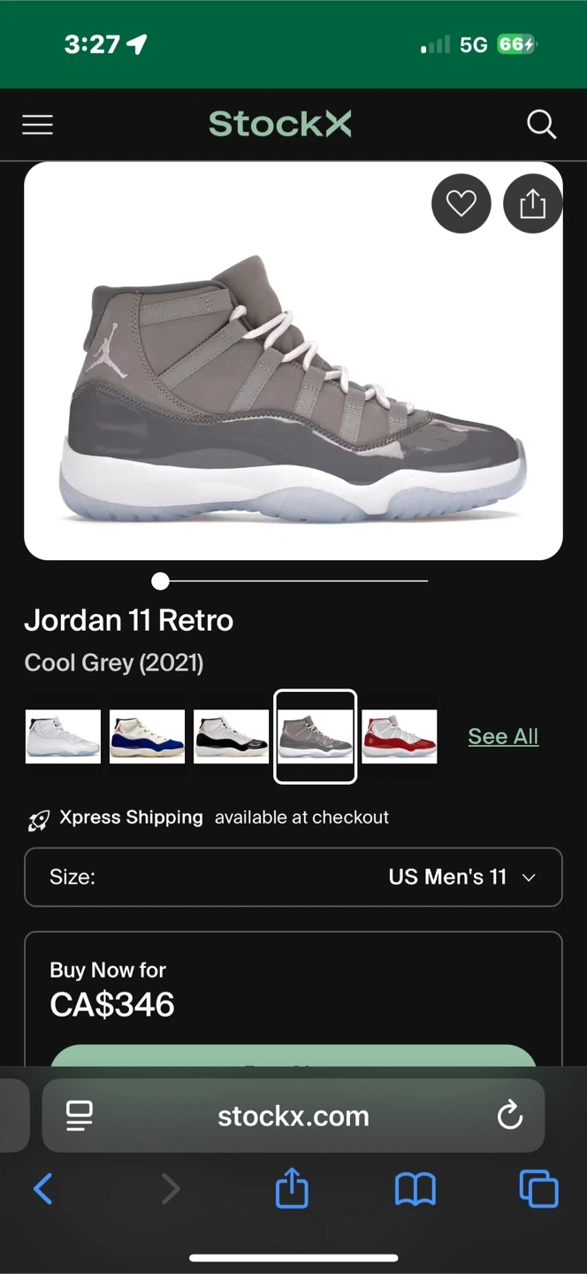 Selling a pair of Air Jordan 11 Retro in the Cool Grey colourway, size 11 US men's. Comes with the original box. Don't miss out!