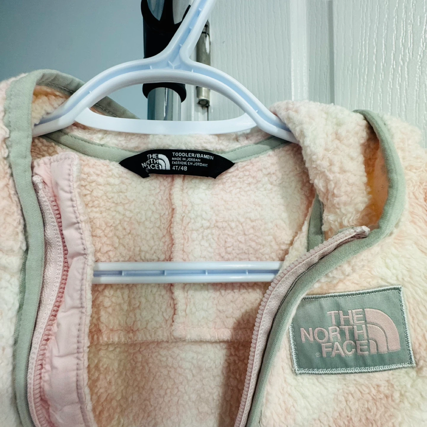 Keep your little one cozy with this adorable The North Face toddler fleece jacket! It's a size 4T and perfect for keeping your toddler warm on chilly days. The jacket features a soft, fuzzy fleece material and a hood for extra warmth.