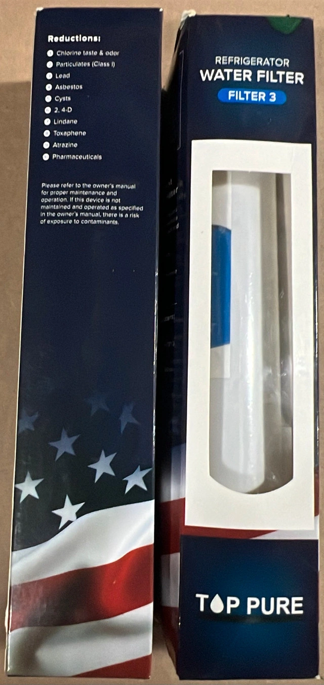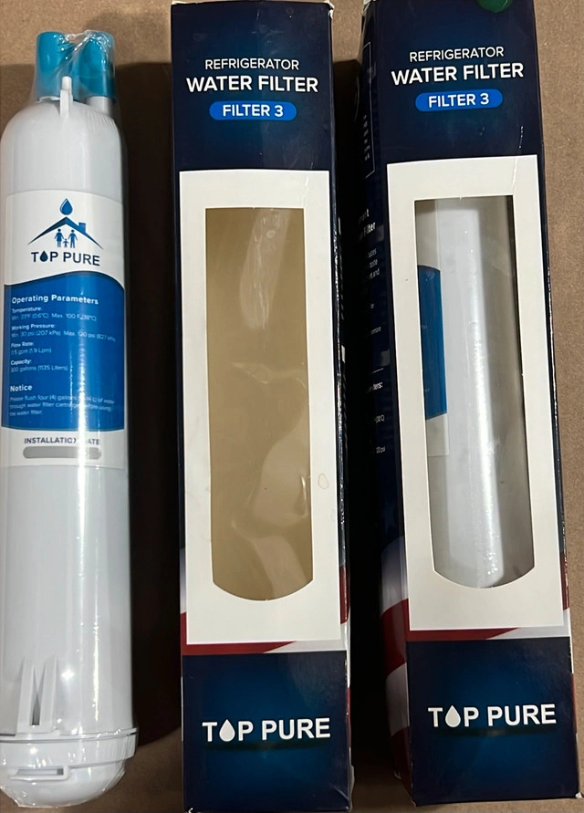 This is a new Top Pure Filter 3 refrigerator water filter, ensuring your fridge dispenses clean and refreshing water. This filter is compatible with select Kenmore refrigerators, offering a long-life filtration of up to 6 months! Specifications: * Reduces chlorine taste and odour * Reduces particulates, lead, and cysts * Filters sediment and pharmaceuticals * Capacity: 300 gallons (1135 Litres)
