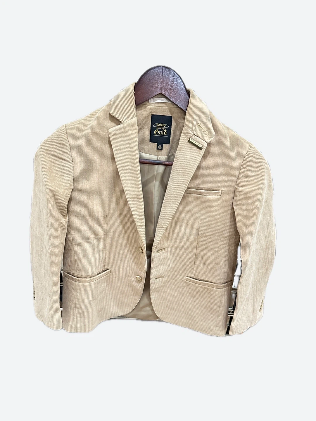 Selling a stylish Gold brand corduroy blazer in size 6-8 years. The blazer is a beige colour with a classic design. Perfect for adding a touch of sophistication to any outfit!