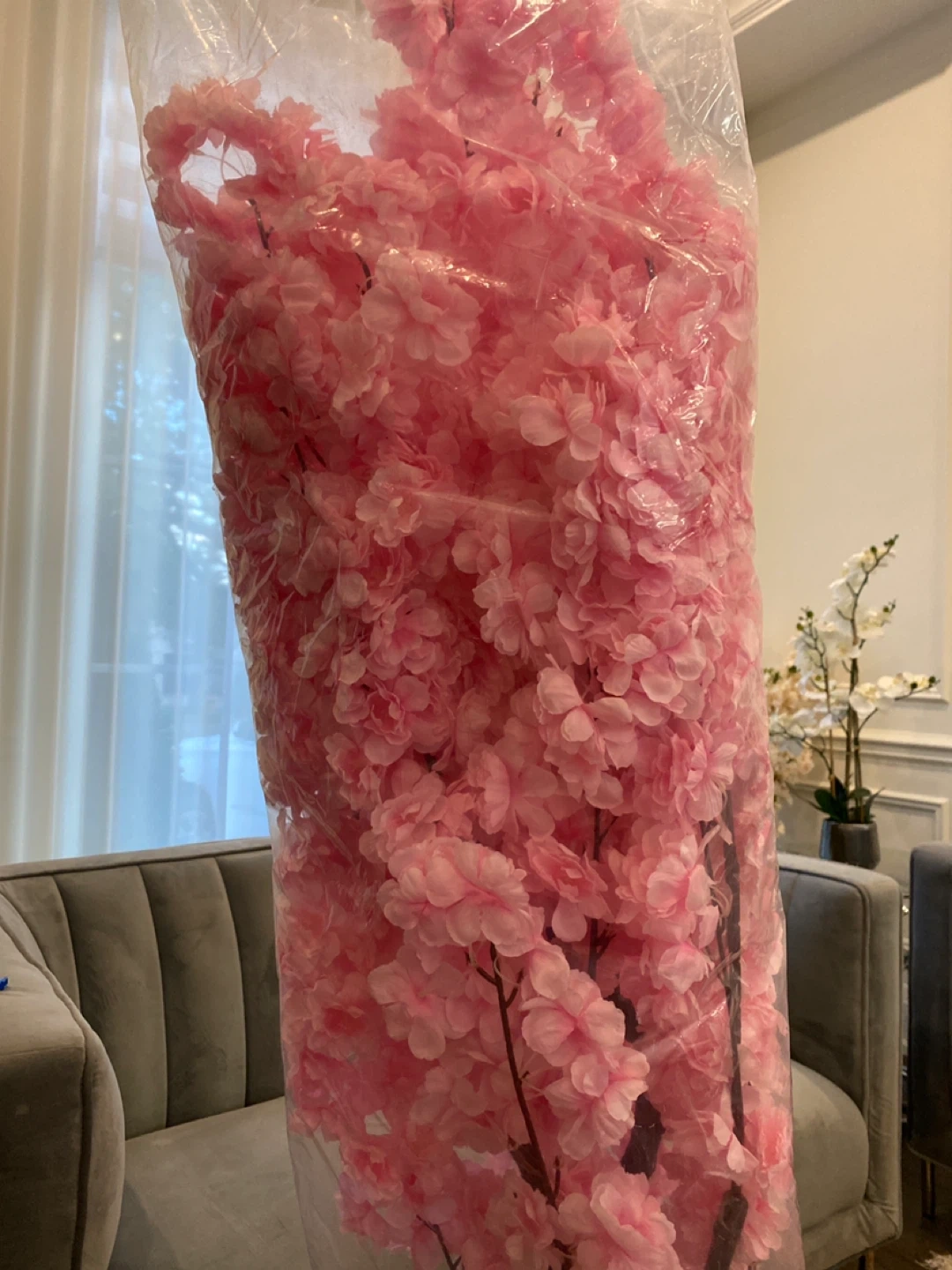 Selling a beautiful artificial cherry blossom tree! It's in great condition and comes in its original packaging. This tree adds a touch of spring to any room. The flowers are a lovely shade of pink and the branches are realistic. Perfect for home decor!