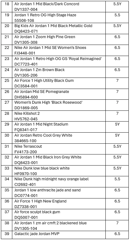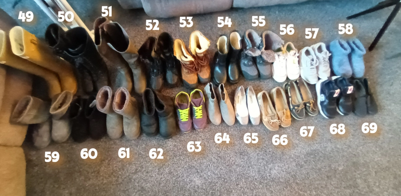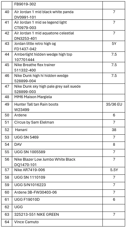 Brands include: Nike, Jordan, Adidas, UGG, Jimmy Choo, Maison Margiela and more! Fantastic reseller opportunity! The shoes are valued at over $4,000 in their current condition. I'm selling the lot for $1,000, that's $14.5 per pair. Two pairs in this lot that are in good condition were over $2,000 new. Please see the pictures for list of shoes as well as their size. I will send individual pictures of each pair to serious buyers.