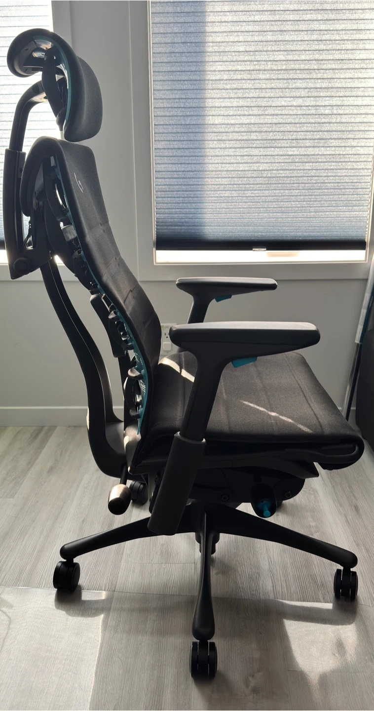 Selling a Herman Miller Embody Gaming Chair in black. It's in great condition and ready for a new home. This chair is designed for comfort and support during long gaming sessions or workdays. The Embody chair is known for its ergonomic design and adjustable features, providing a customized fit for optimal posture and comfort. It comes with Atlas headrest.