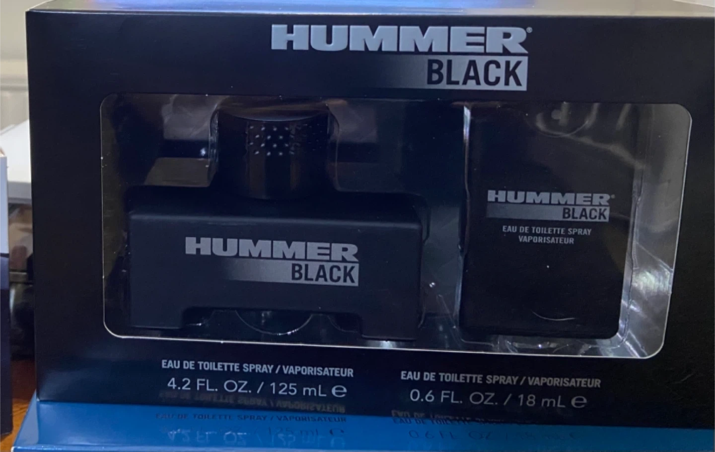 Selling a Hummer fragrance set that includes both Black and Chrome Eau de Toilette. - Hummer Black: 4.2 fl oz / 125 ml - Hummer Black: 0.6 fl oz / 18 ml - Hummer Chrome: 4.2 fl oz / 125 ml - Hummer Chrome: 0.6 fl oz / 18 ml. Price for each set. Pick up from the border of Brampton and Caledon.