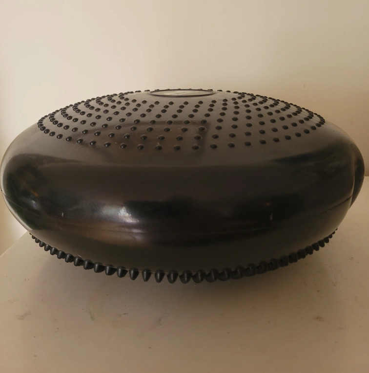 Get your balance on with this Reehut wobble cushion! It's great for improving stability and posture. It measures approximately 13 inches in diameter and is in good condition. Perfect for home workouts or office use
