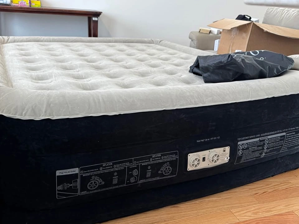 Size -California King Special feature Built-In Pump Brand -King Koil Colour -Black Material Luxury Side & Top Flocking For Maximum Comfort Used - 2 times ( like brand new ) King size with pillow top comfort Fast built-in pump (inflates in under 3 mins) Adjustable firmness & supports up to 650 lbs Durable, waterproof Perfect for guests, camping, or travel