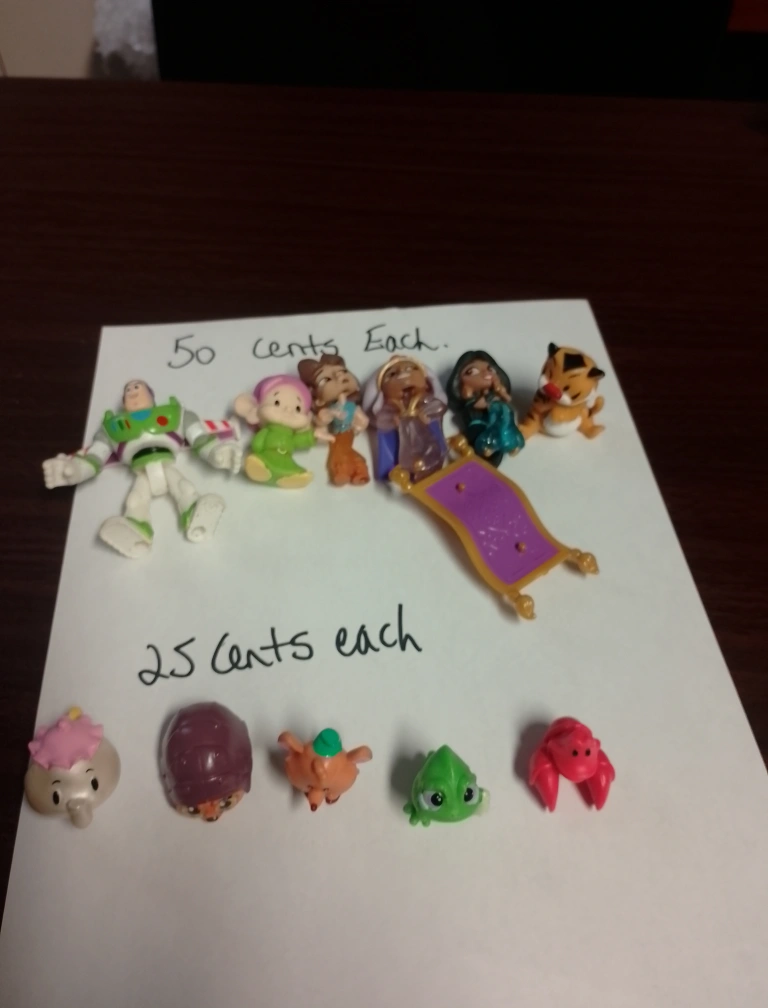 Selling some cute Disney mini figures! Some are 50 cents each, and others are 25 cents each. Perfect for collectors or kids!