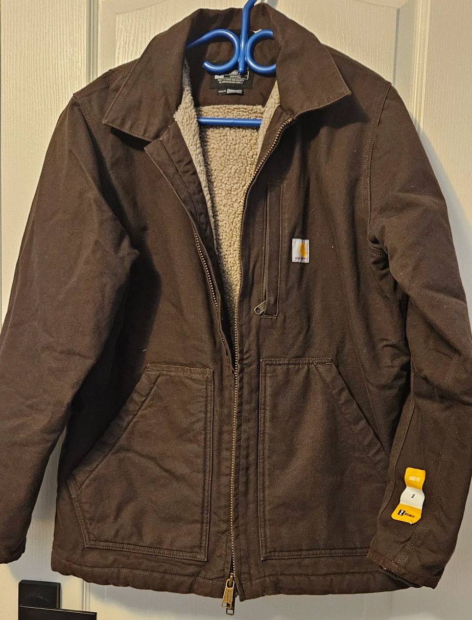 Stay warm and protected when you're working outdoors in Carhartt's insulated coat. It has a soft and cozy Sherpa body lining and quilted nylon in the sleeves. Pleated elbows improve moving room and the bi-swing pleated back prevents constriction during extended arm movement. Inside storm cuffs stop cold and debris from getting up your sleeves.