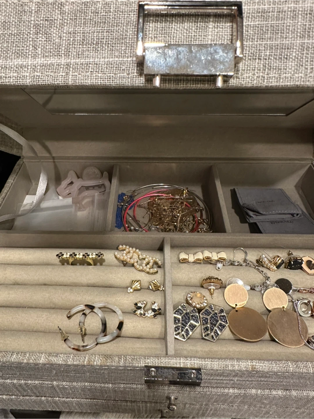 Selling a jewelry box with a drawer. It's in good condition and perfect for storing your jewelry and accessories! (Jewelry not included!)