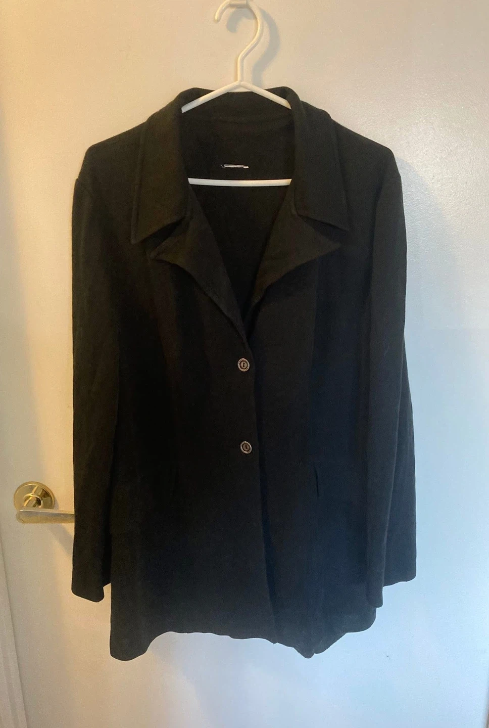 Women’s black long sleeve soft dress jacket in excellent condition . Size XL. From a smoke free home . Pick up only , in Woodstock. No holds . No delivery