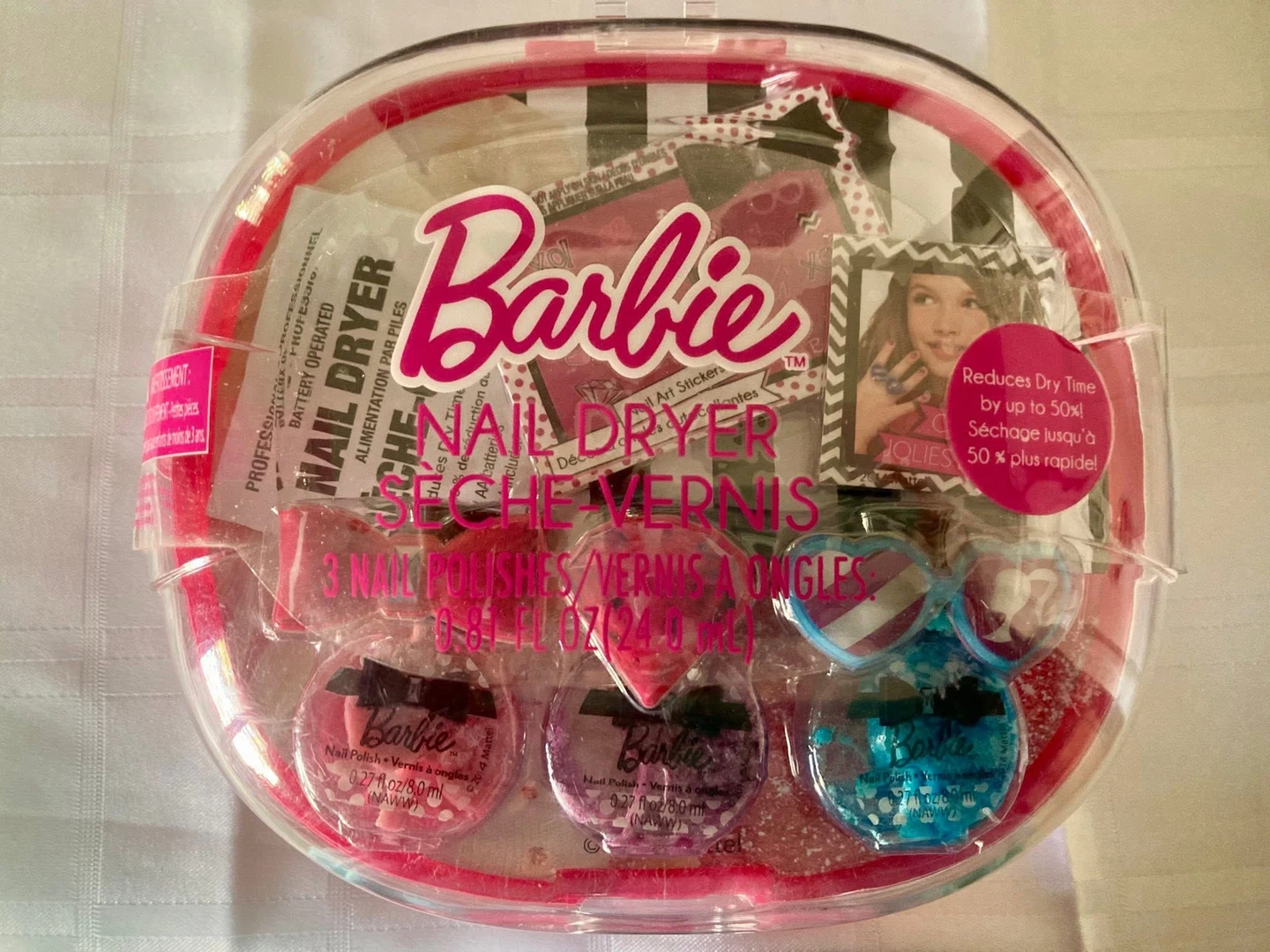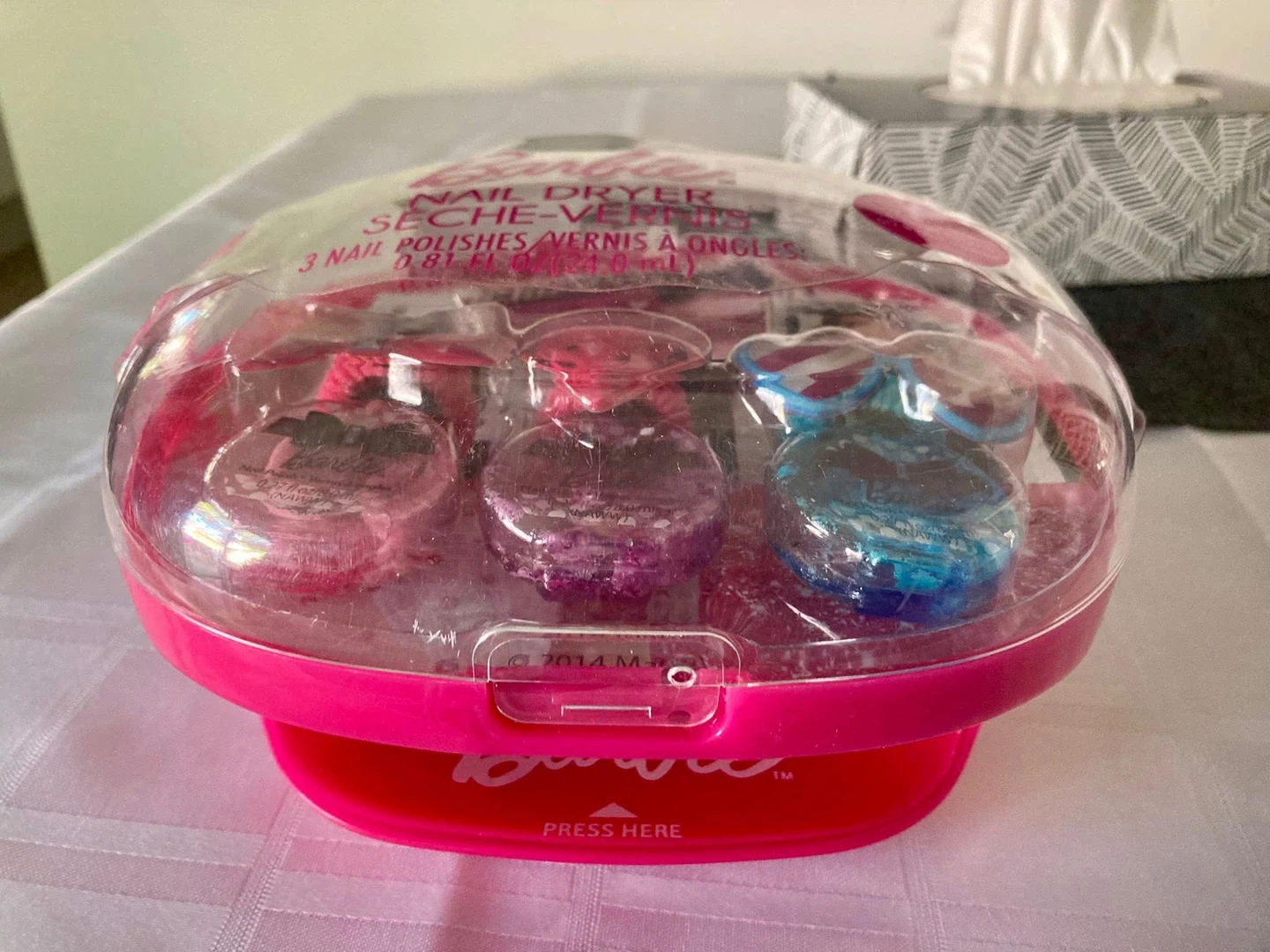 Brand new girls nail dryer set . Reduces dry time by up to 50% . Includes three nail polishes & 3 rings to wear . Not for children under 3 years old. From a smoke free home . $10 FIRM. Pick up only , in Woodstock. No delivery. No holds .