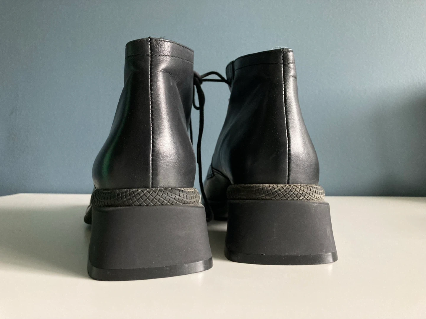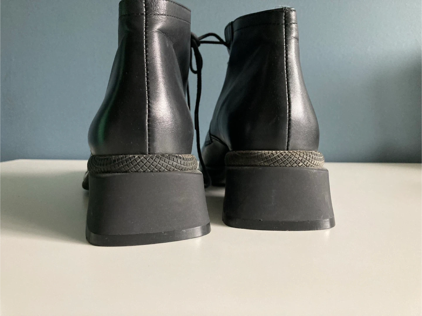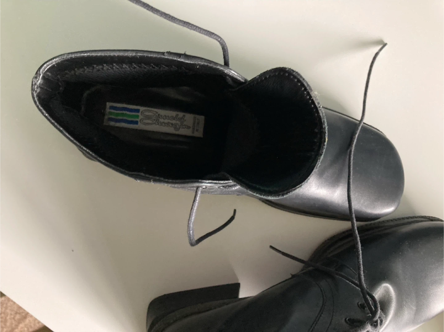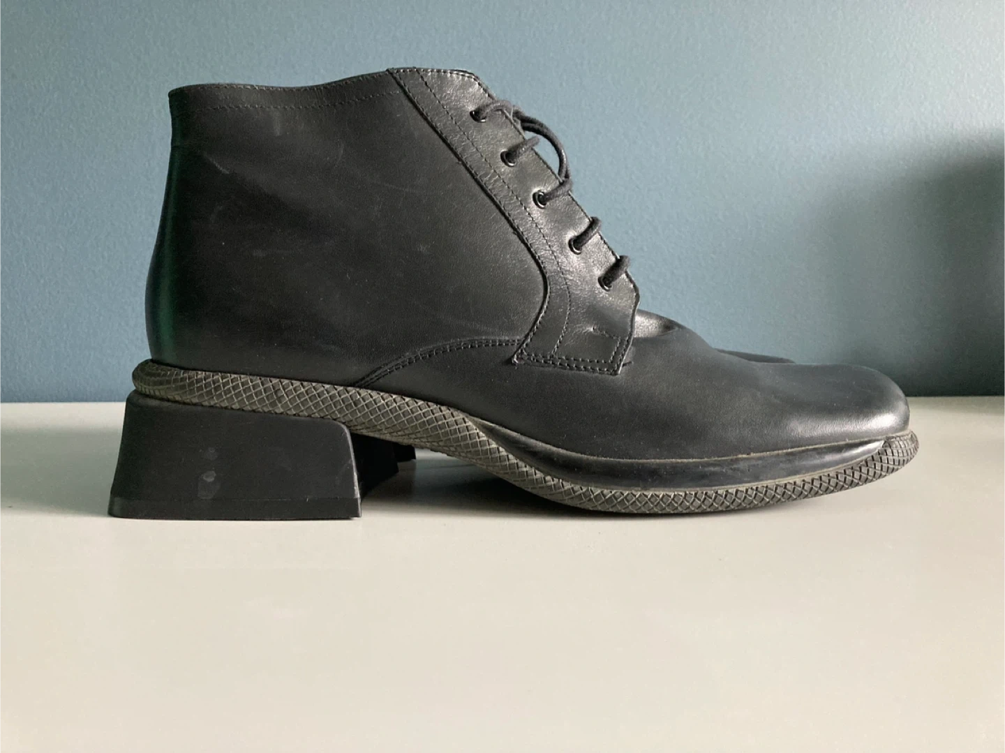 These are a pair of Arnold Churgin black leather ankle boots. They appear to be in good condition. They are handmade in Italy.