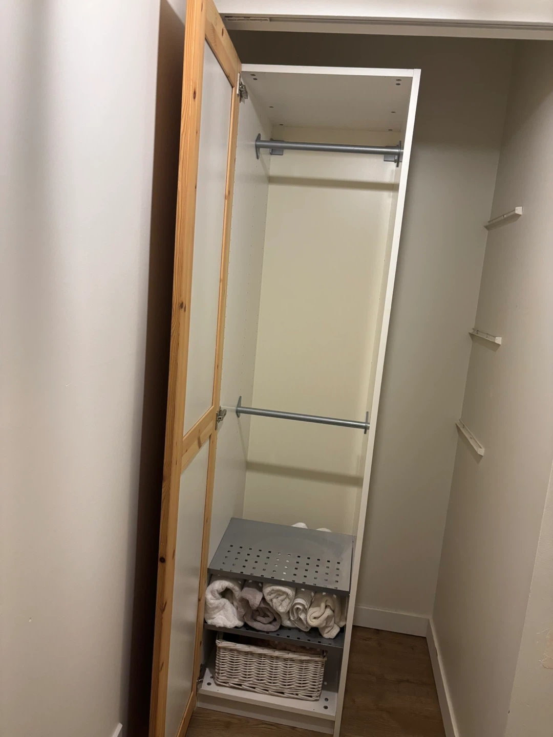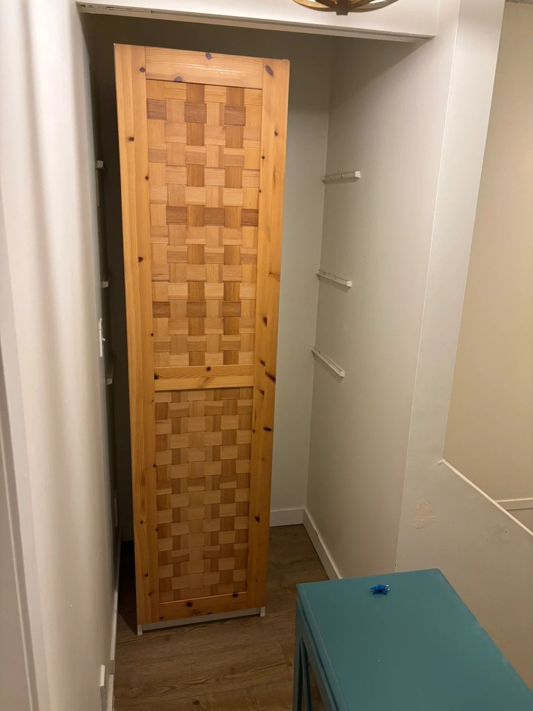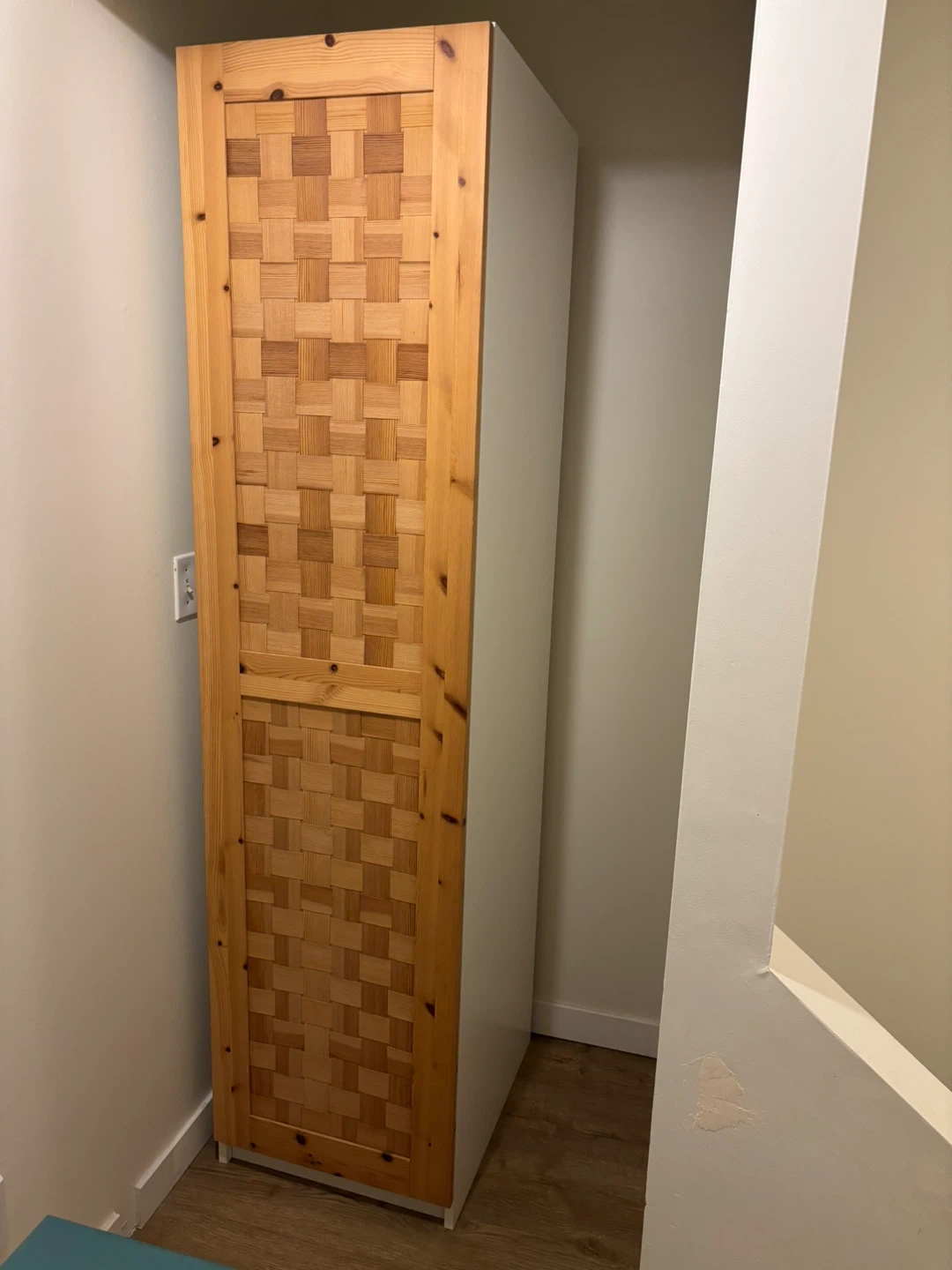 IKEA pax storage unit with earthy natural pine door. Selling because I don't need it after all. Depth 23" (with door it's 24") Width 19.5" Height 79.5" Get your organization game on! Door can be adjustable to open either way Pick up is in Burnaby near Production Station