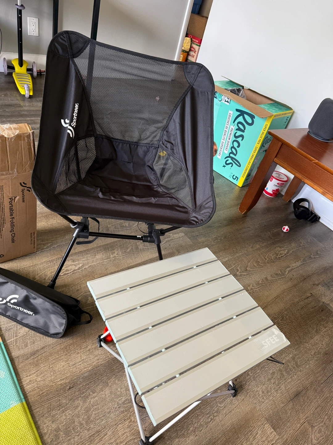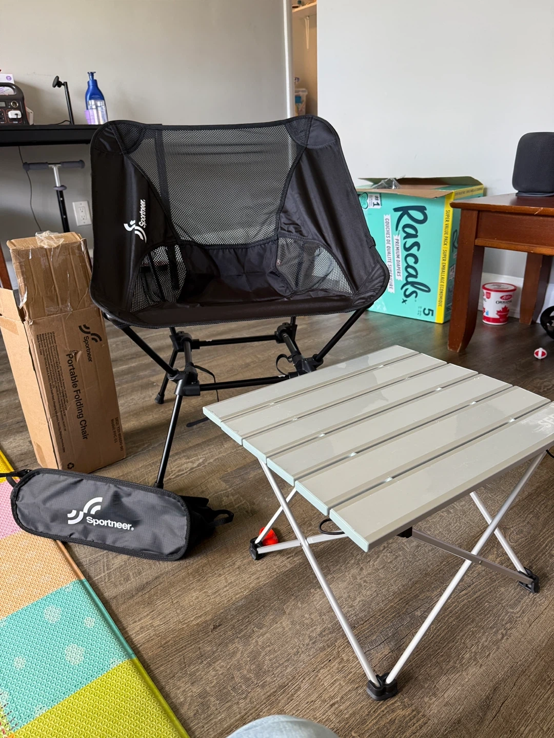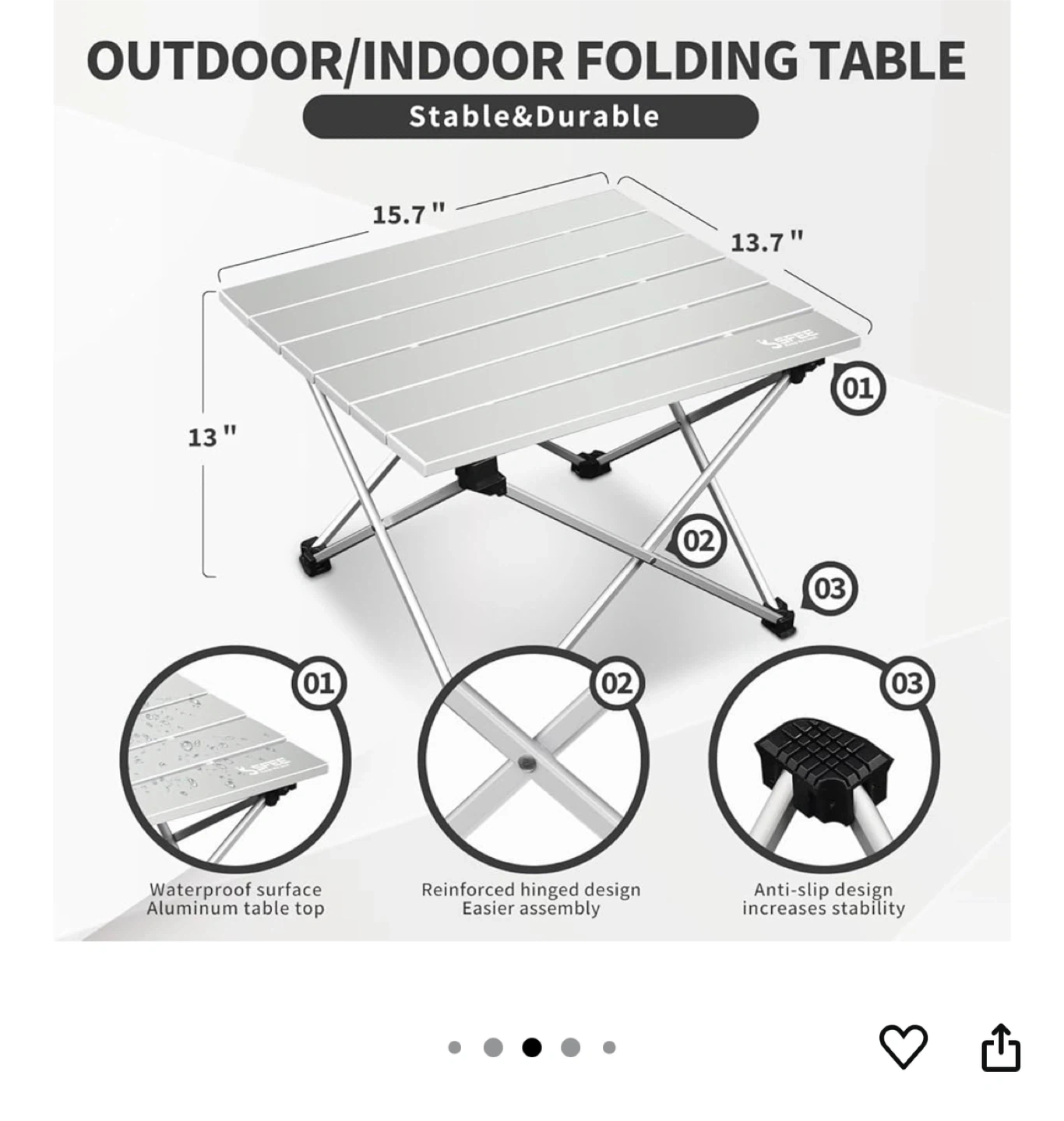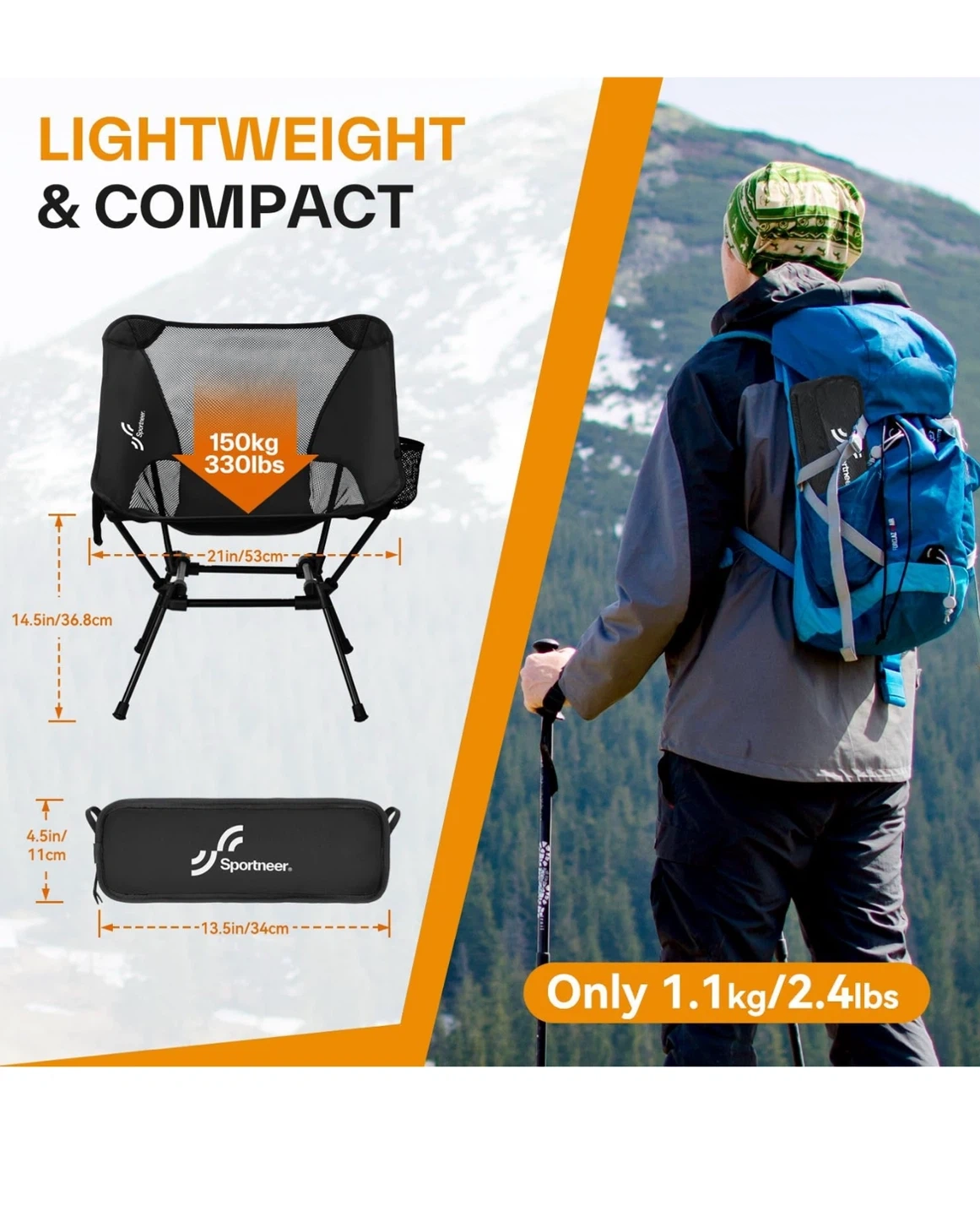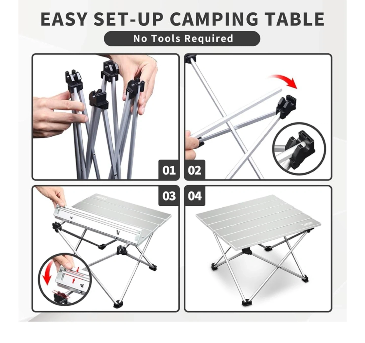 Get ready for your next outdoor adventure with this lightweight and compact folding camping table and chair set! The table features a waterproof aluminum top and reinforced hinged design for easy assembly. The chair can support up to 150kg/330lbs and comes with a convenient carrying bag. Both are super portable, making them perfect for camping, picnics, or any outdoor activity