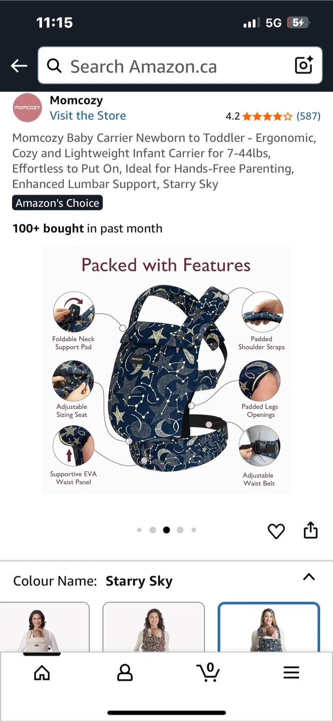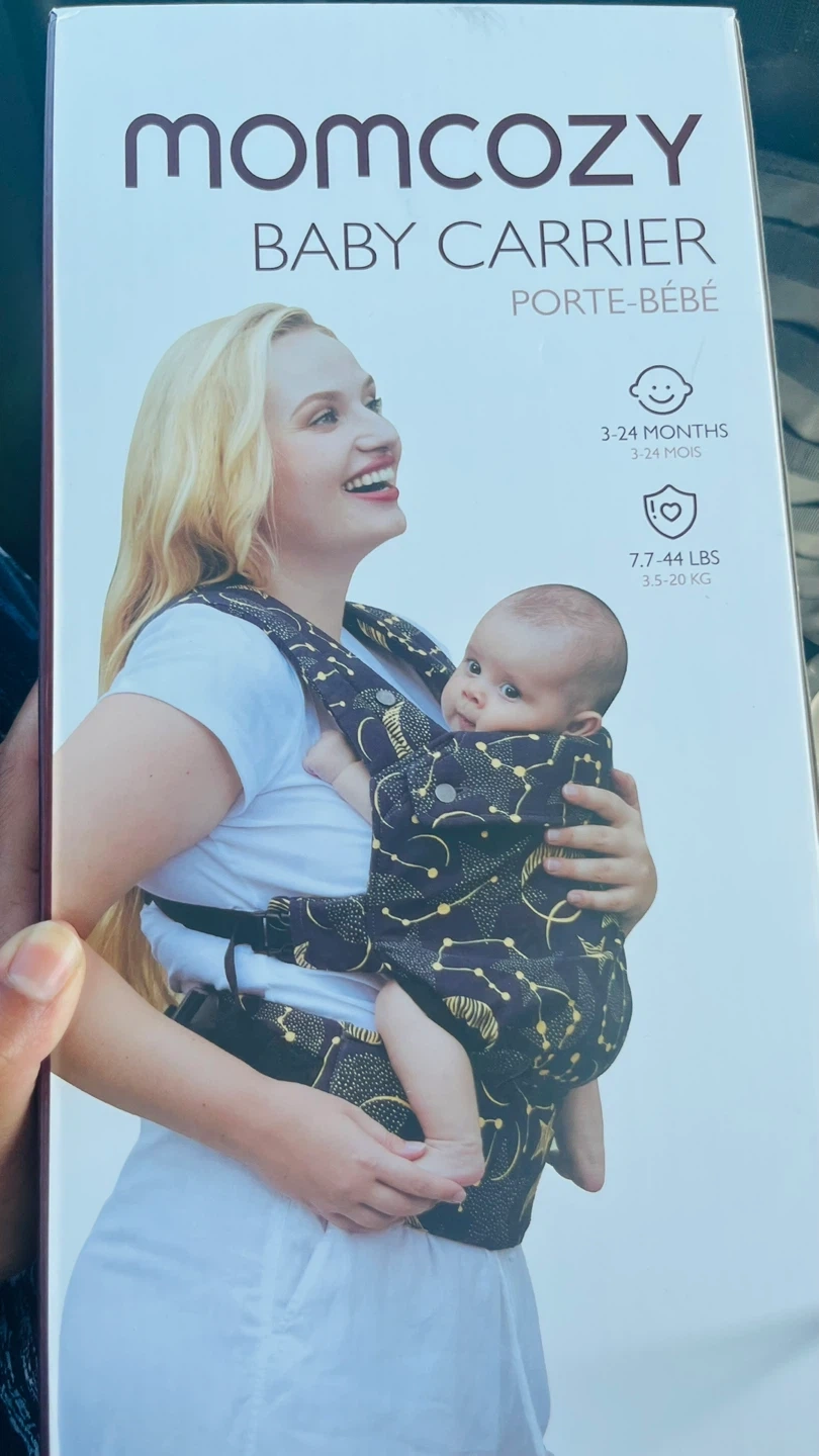 Selling a Momcozy baby carrier in the 'Starry Sky' pattern! It's suitable for newborns to toddlers (7-44 lbs or 3-21 kg) and can be used in 3 different carrying positions. It features padded shoulder straps, adjustable sizing seat, and a supportive EVA waist panel. The carrier is designed for hands-free parenting and enhanced lumbar support. Originally bought for $79.99 and comes with the box!